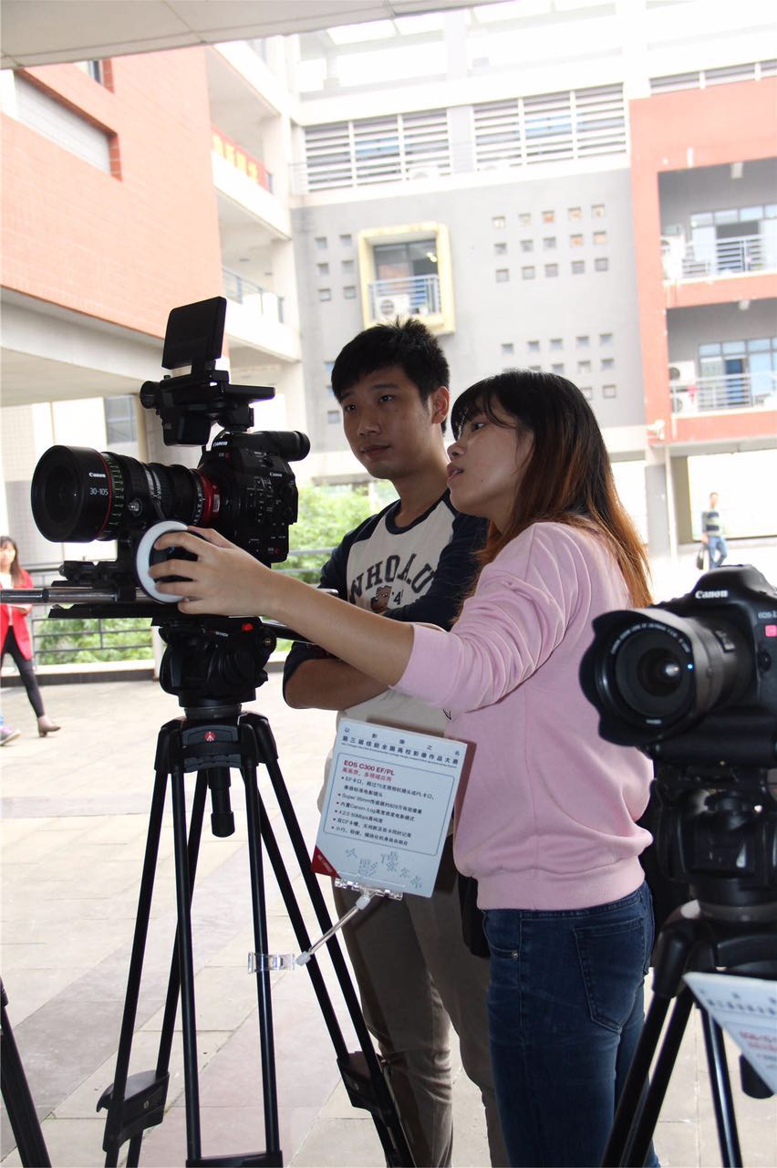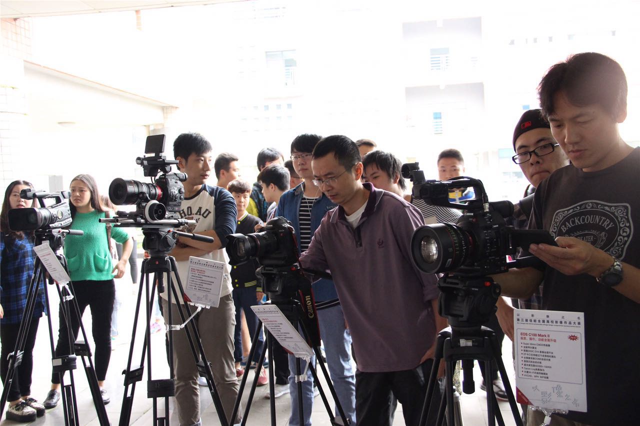 最后,中央电视台第五频道的导演、摄影师杨继光老师和邓骏同台与学生们交流,邓骏先后就影片的工业制作流程及剧本创作等回答学生提问,还包括EOS C100 MARK II和EOS C300设备的使用及曝光、对焦、色温等专业问题。活动结束后,不少同学围绕在邓骏身边不肯散场,他们表达着对“毕奇与阿欧”的喜欢,更是抓住机会抛出各种专业问题或是奇思妙想,邓骏都给出了经验与创意。讲座就在其乐融融的思想碰撞中圆满结束。