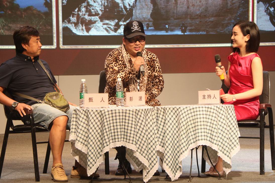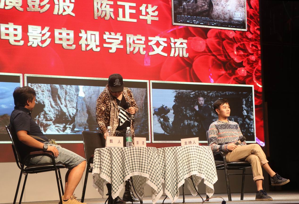 答问环节,同学们表现出高度热情不断发问。演出经验丰富的彭波是重庆人,他非常接地气地表示川渝一家亲,到成都感觉特别亲切。彭波的形象被学生大赞很“萌”,喜感十足。一名表演系学生提问:“波哥,您在看到剧本时和演出过程中,对角色的理解有没有变化?您是如何定位的呢?”彭波非常健谈:“我以前都是演喜剧,特别在《疯狂的石头》里的角色总被人提及,这次也想突破自我演硬汉,哪知道到了《心跳戈壁》我还是负责搞笑部分,硬汉形象都是邵兵他们的,没我啥事……本来我在戏中也是有女朋友的,我就一直等着那场戏,想在戈壁浪漫一把,可到了杀青也没那场戏,当然更不会让董璇大美女做我女朋友……”彭波幽默风趣的语言引得台下掌声不断,笑声连连。