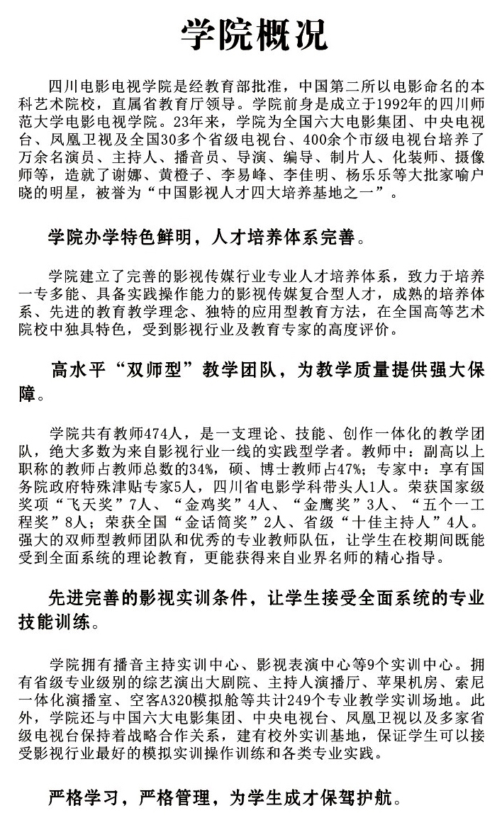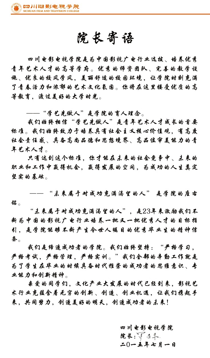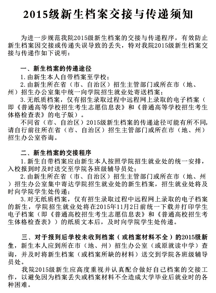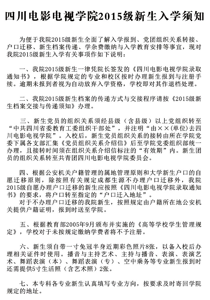 一、以下物件不能忘:录取通知书、个人档案(含团组织关系)、户口迁移证(户籍证明)、照片(一寸免冠近照8张,艺术照1—3张)、身份证复印件(一式两份)