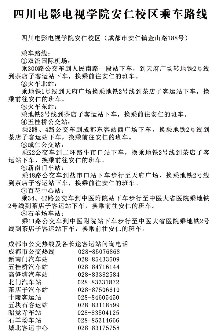 8月31日8:00—16:30,9月1日8:00—15:00在成都市茶店子客运站设置新生接待点。