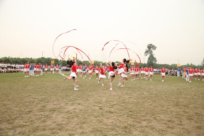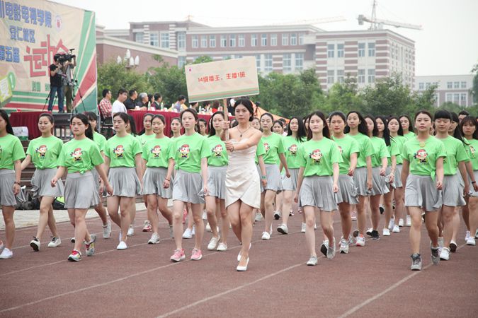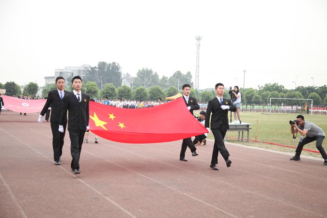早上8:00分,在激昂雄壮的运动员进行曲中,运动会开幕式正式开始,国旗方阵、校旗方阵和会旗方阵迈着昂扬的步伐走向主席台,紧随其后的是教职员工方队、裁判员方队、团体操方队和各系、各班同学组成的方队。他们队列整齐,意气风发,依次走过主席台接受学院领导的检阅。入场仪式结束后,进行了庄严的升国旗仪式。在庄严的国歌声中,五星红旗冉冉升起,全体师生向五星红旗行注目礼。接着,播主、管理、编导、音像制作、舞表和艺术设计专业的同学分别表演了她们为开幕式精心准备的团体操。