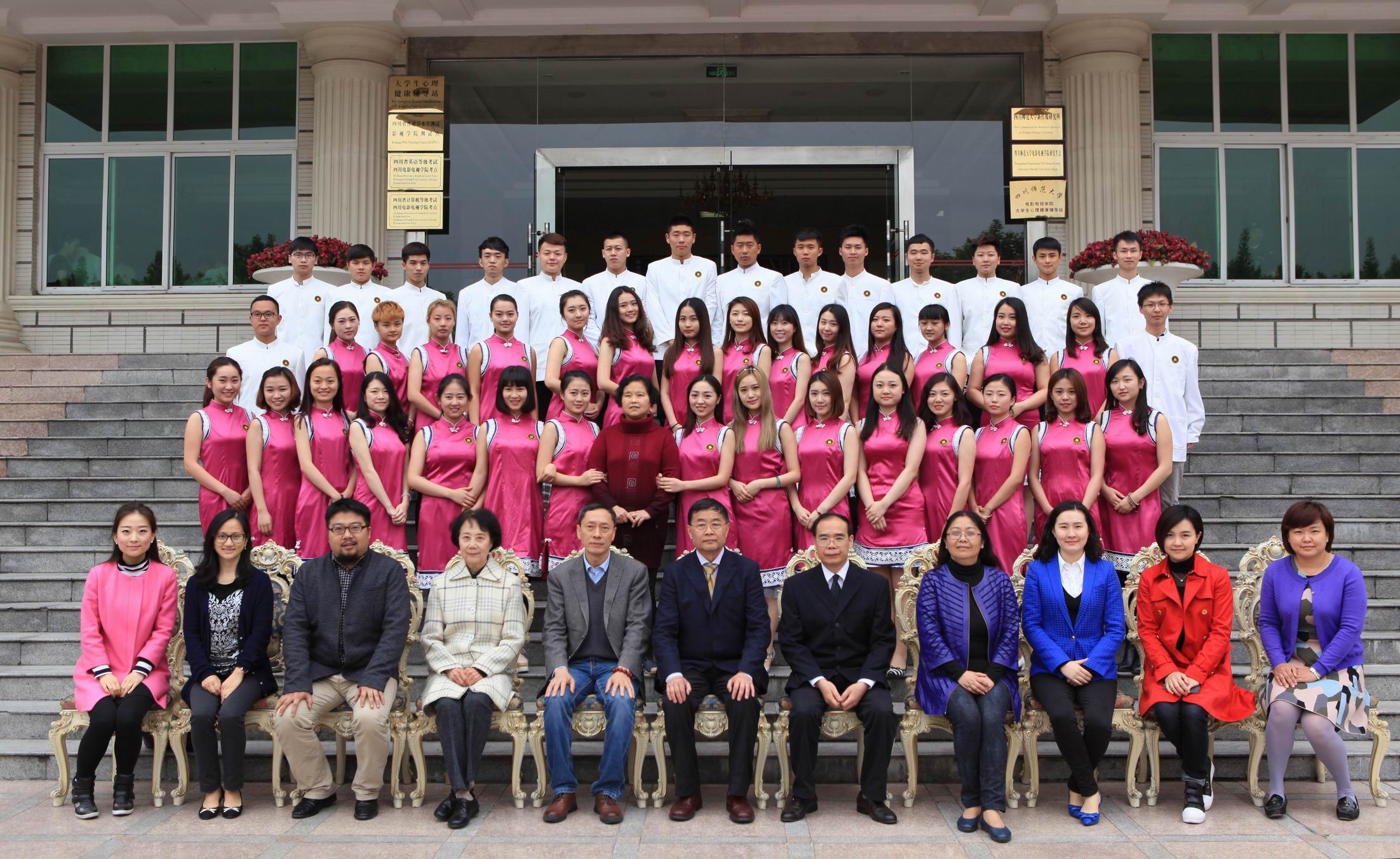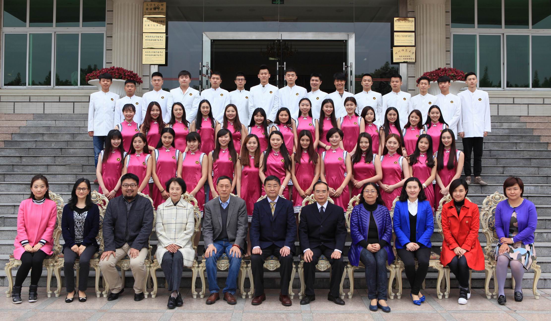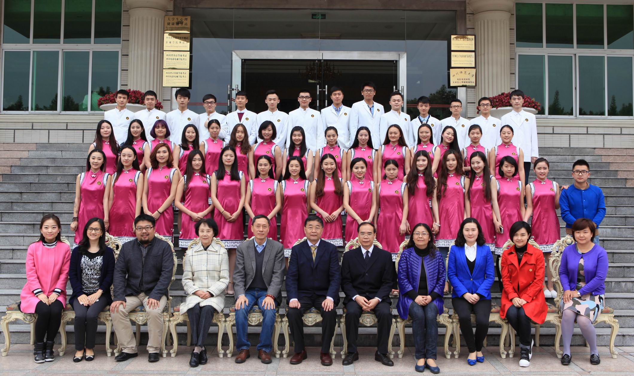 4月22日,学院组织2015届毕业生毕业照拍摄工作。院长罗共和、副院长胡宗清、党委书记罗映光、教学督导翁如、学生处副处长王海玲、播音系主任赵小蓉、导演系主任白山衫及各系专业老师出席。