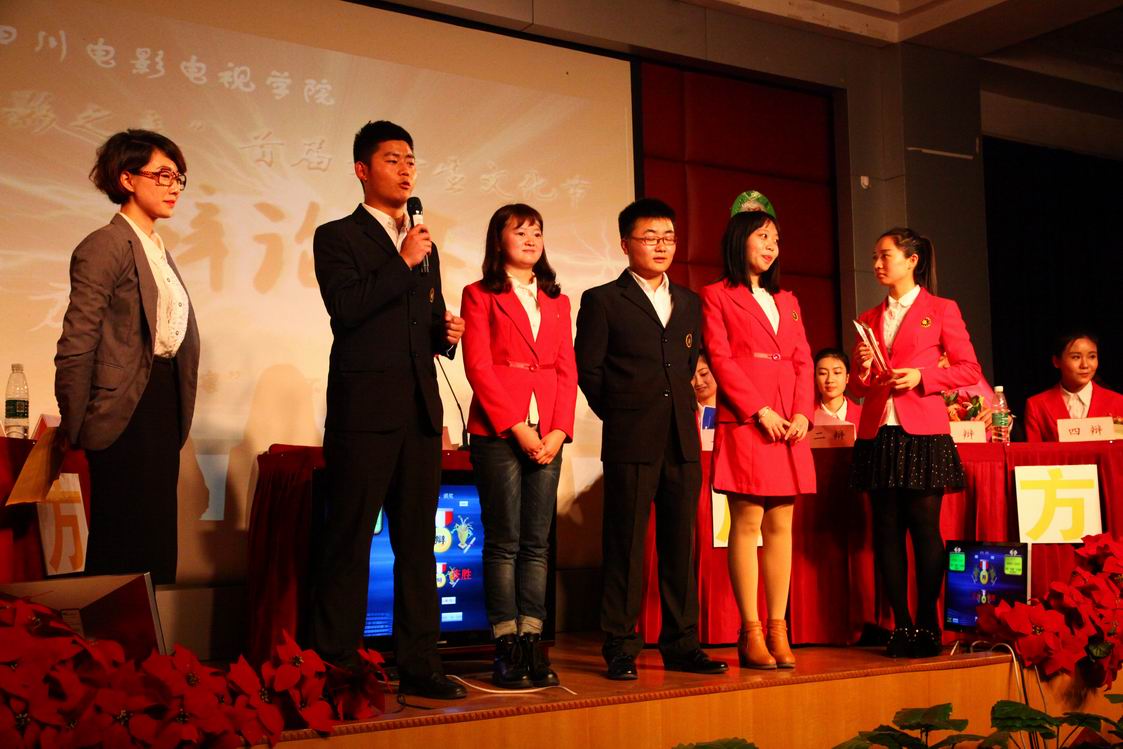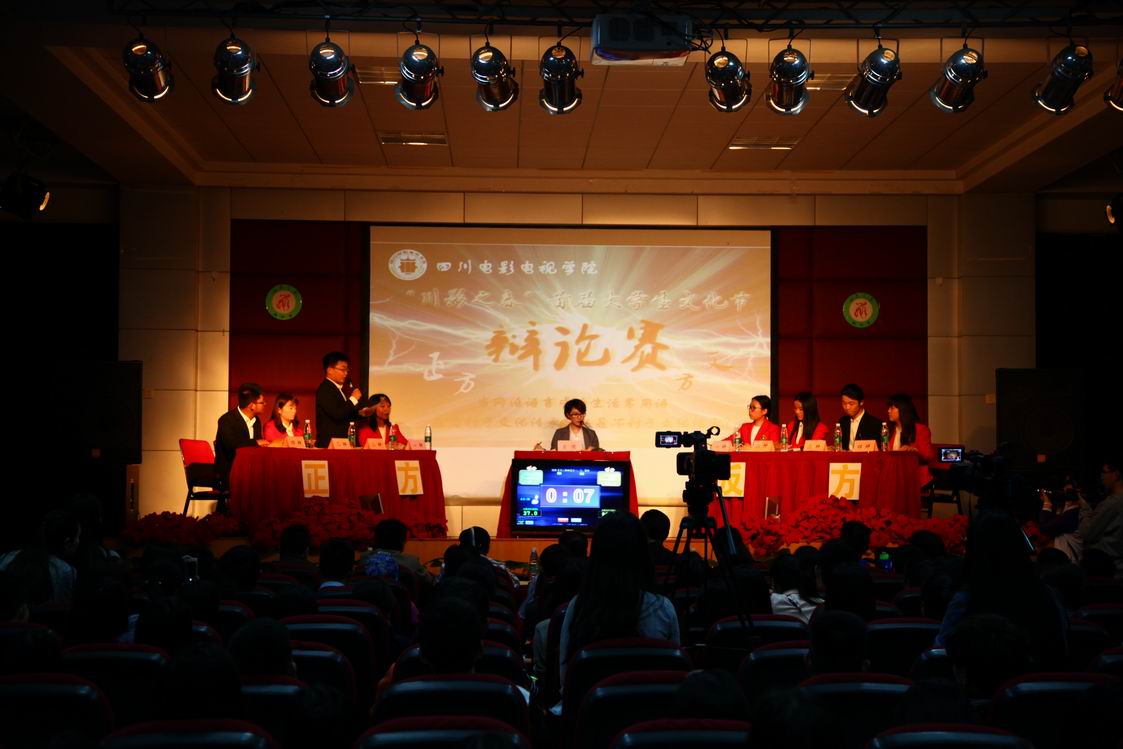 4月13日晚,由党委学工部(处)、团委主办的“川影之春”首届大学生文化节辩论赛决赛在学术报告厅举行。本次比赛的评委由学院党委书记罗映光,新闻传媒教研室主任孙宁丰,播音系教师欧阳平、王炜、韩辉、付强担任。