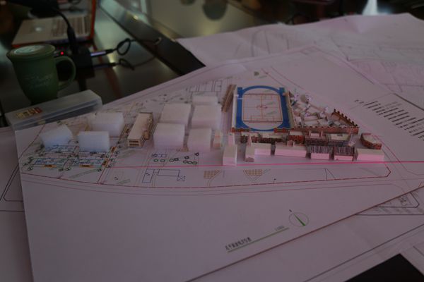 调研会上,上影公司设计大师谷文哉先生从电影拍摄角度对安仁校区影视城规划设计图各功能部分进行了详细说明。他结合学院未来规划模型,未来影视拍摄发展方向,形象具体地向大邑县领导阐释影视城的整体布局建设规划和面临的问题。规划设计单位深圳星蓝德工程有限公司总经理彭志平对设计布局规划方案中的一些问题进行说明并提出建议。