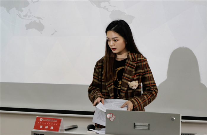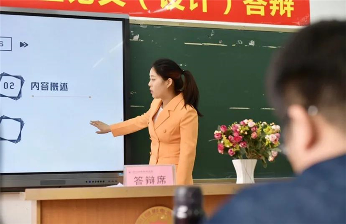 答辩开始,大家充满自信,稳定发挥,结合 PPT 就毕业论文(设计)的选题背景和意义、内容概述、主要研究方法、研究步骤及主要参考文献等内容向答辩组老师进行了展示。