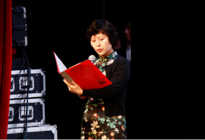 安仁校区活动现场,党委副书记韩卡兰宣读“学习先进个人”“年度学习标兵”“优良学风班”的表彰决定