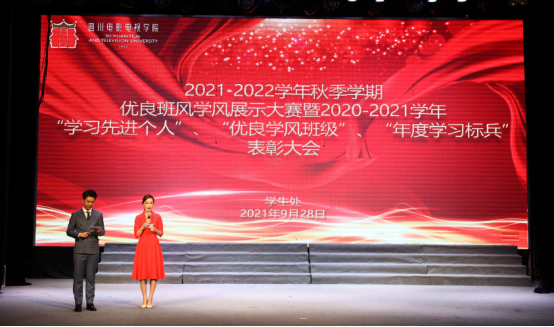 为了更好地推进川影学风建设,以表彰先进,树立榜样,激励同学们共同进步。活动中,党委副书记韩卡兰、党政办公主任孙龙萍宣读2020-2021学年“学习先进个人”“年度学习标兵”“优良学风班”的表彰决定。本次表彰经各班推荐,学院初审,学校终审,最终评选出学习先进个人148人,年度学习标兵75人,优良学风班级41个。