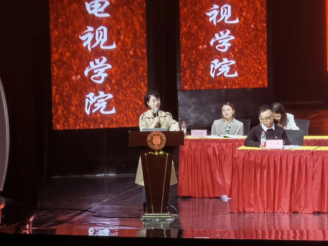 播音主持学院院长赵小蓉、播音主持学院党总支书记、副院长李丹、播音主持学院党总支副书记曾丽萍、学工部负责人、团总支负责人、各教研室主任、宣传推广中心负责人、教学秘书、行政秘书到场参与会议。播音主持学院办公室主任严辉担任了本次活动的主持人。