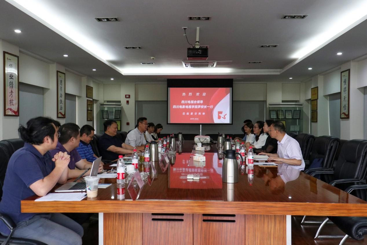 四川广播电视台台长助理、四川广电传媒集团有限公司董事长陈力等接待了罗思副校长一行。双方就学生实习就业情况、合作机制建设、合作路径探索、合作模式搭建,以及未来合作计划等方面进行了深入交流。