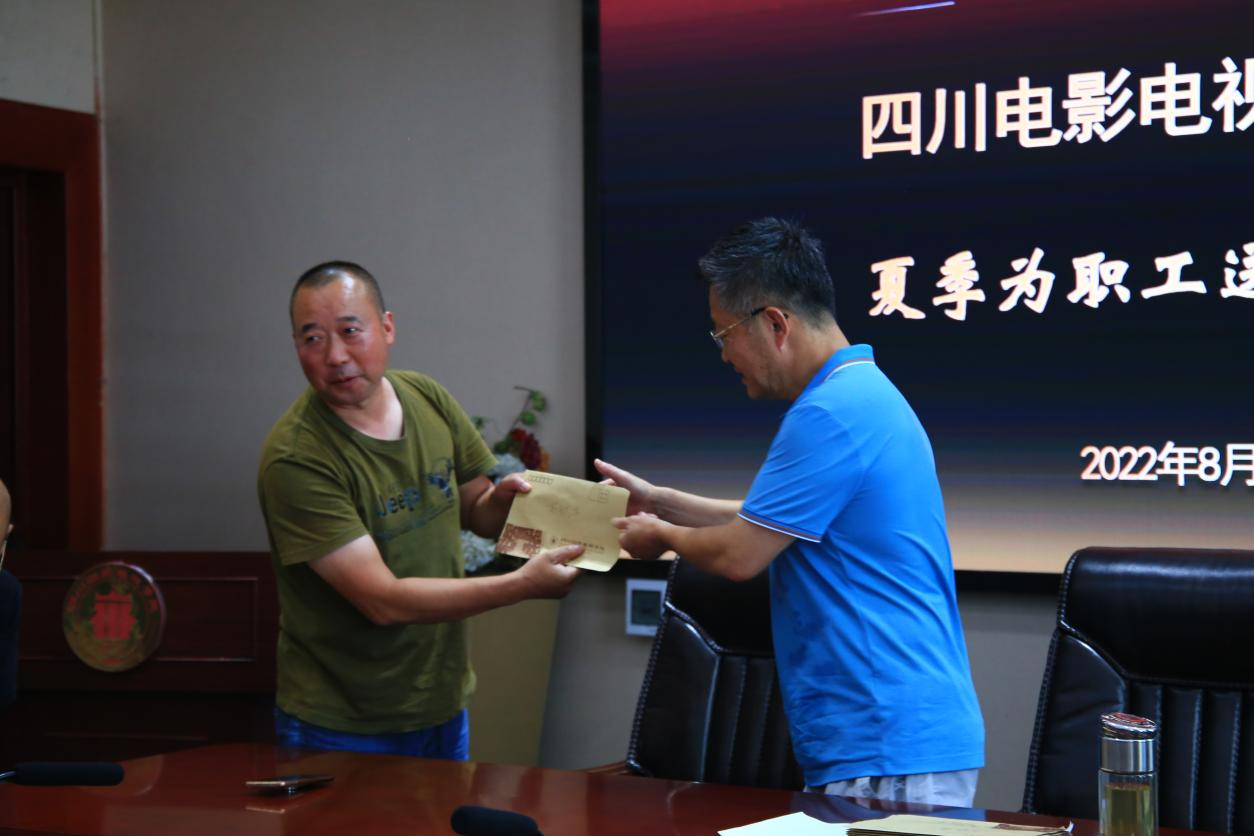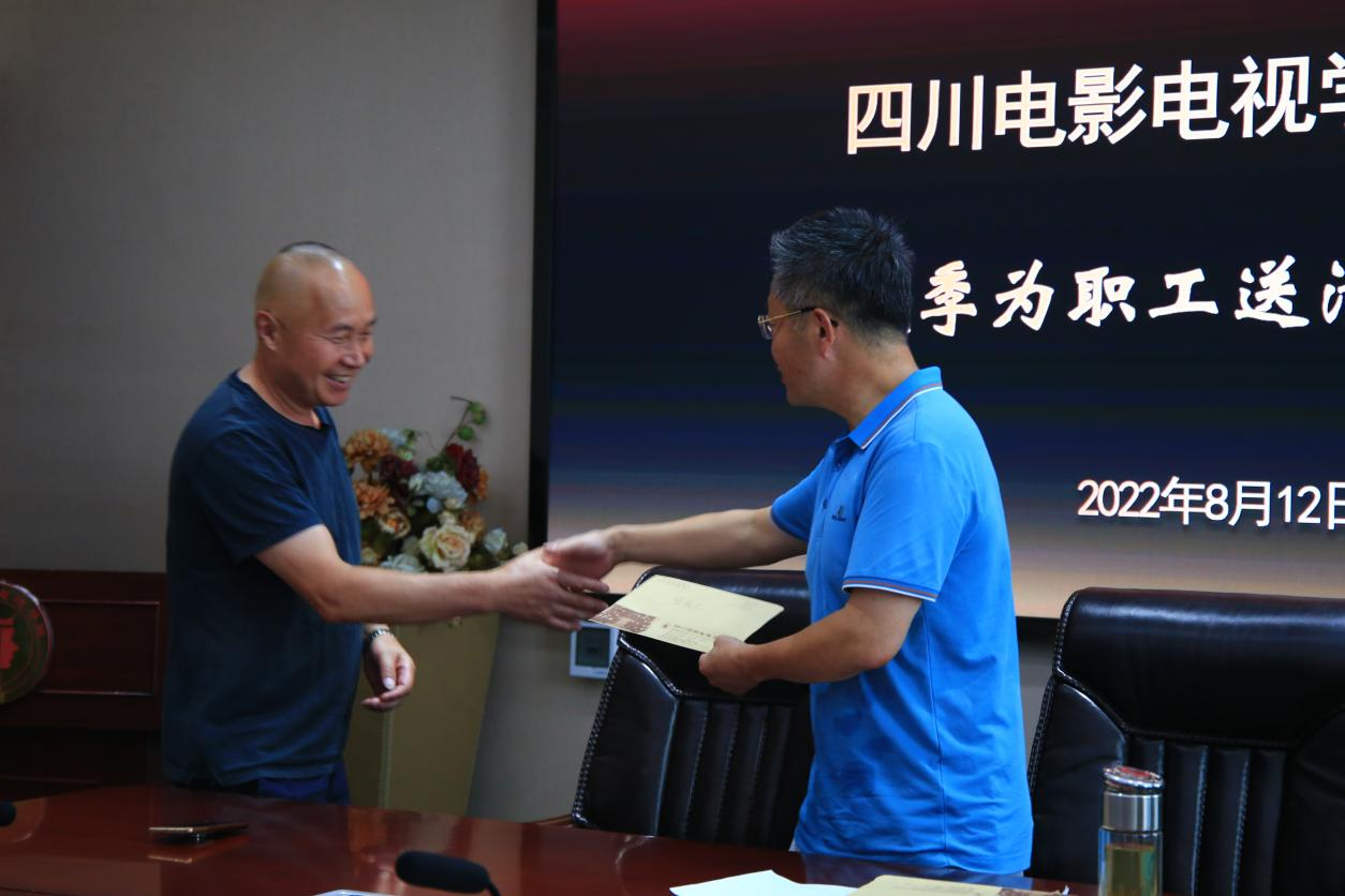 校务委员、后勤基建处处长柳运西为物管科长发放慰问金