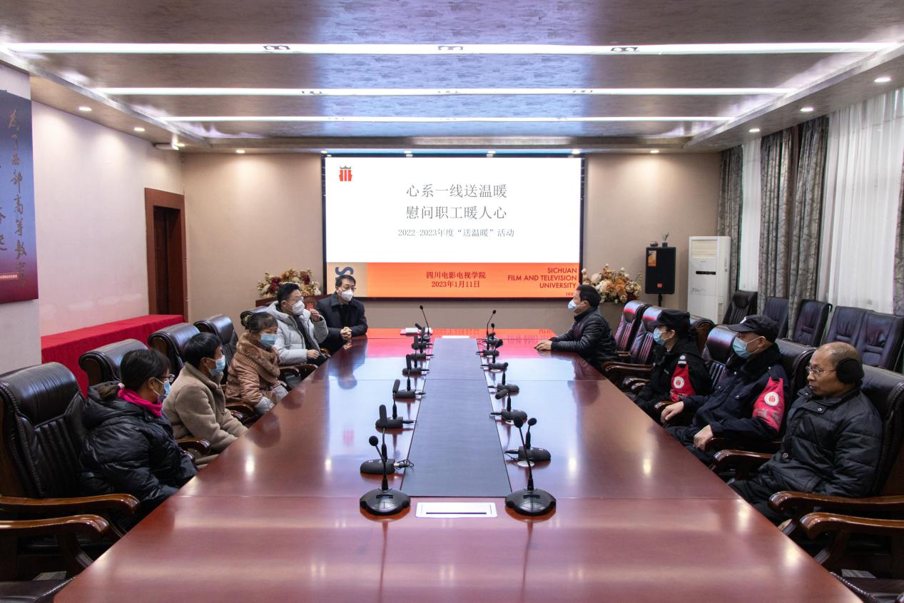 2023年1月11日上午, 校工会在安仁校区贡院第二会议室、金牛校区第三会议室开展2023 年元旦春节“送温暖”慰问活动,对困难教职工进行慰问,在新春佳节即将到来之际,及时送上温暖的关怀和亲切的祝福。党委组织部长、工会副主席刘国富,后勤基建处处长柳运西,保卫处处长陈召平,人事处副处长陈林等相关部门负责人参加。