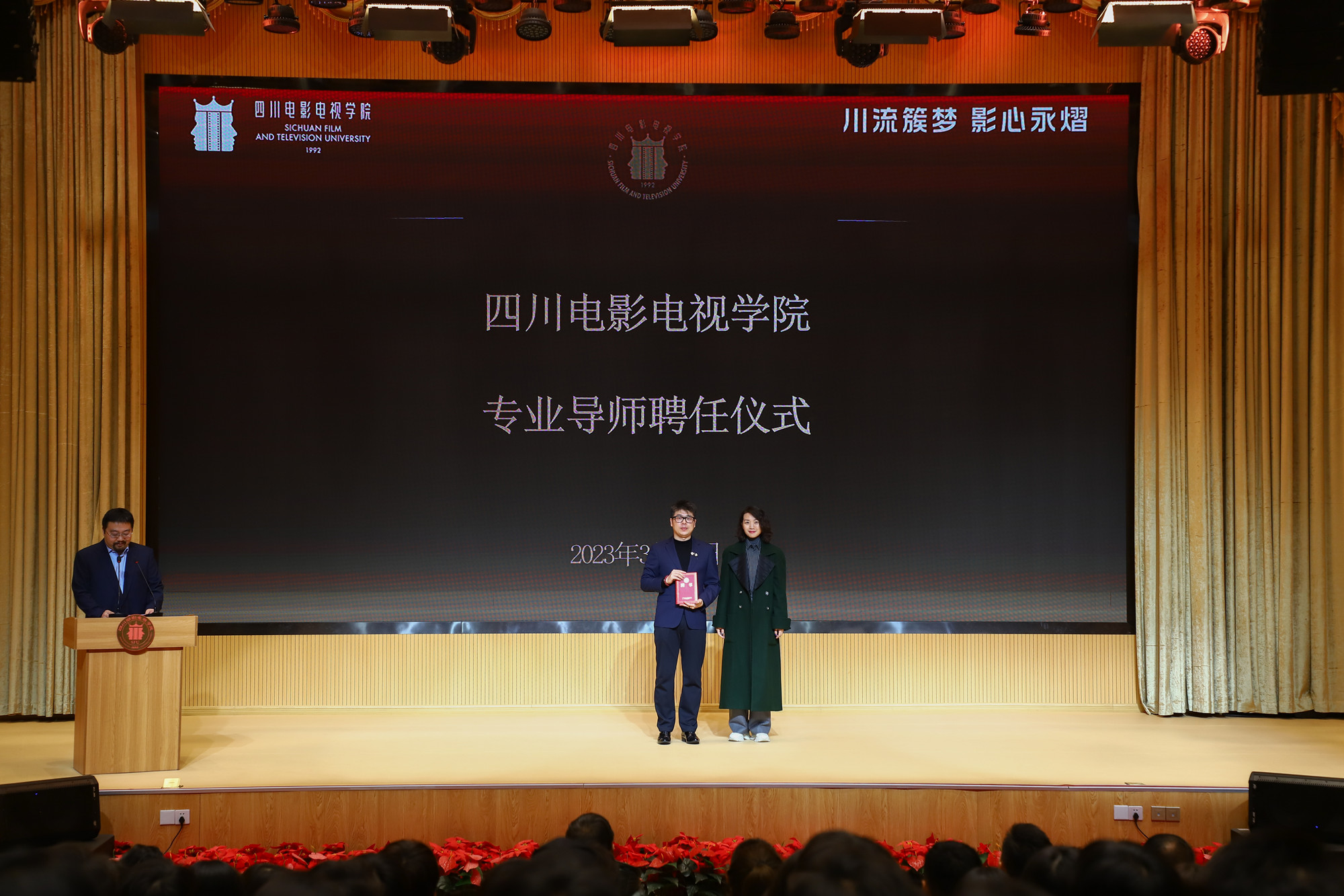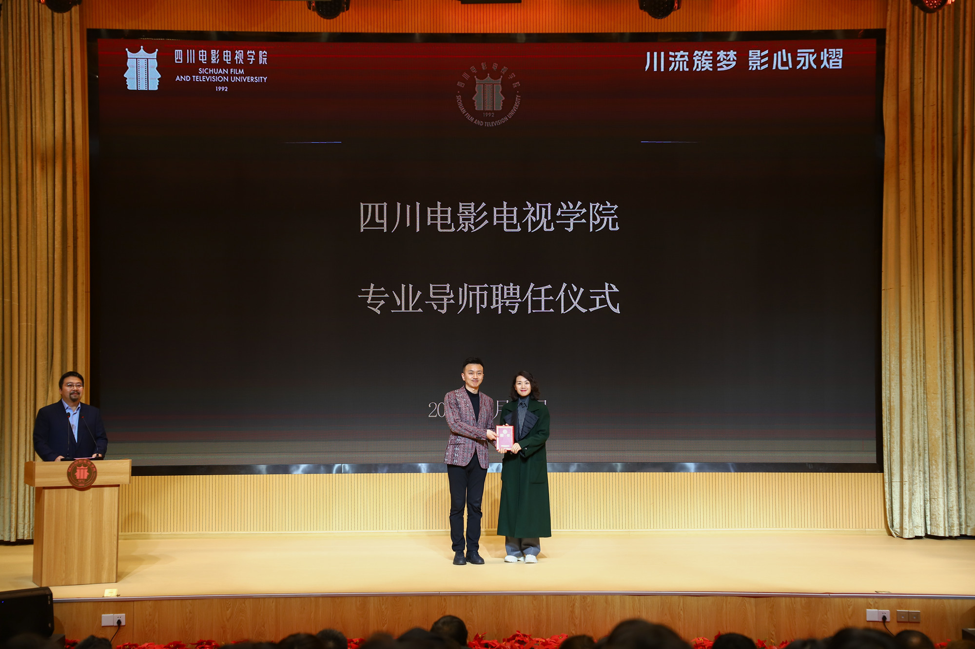3月20日,beat365平台官方网站客座教授聘任仪式及讲座交流活动在安仁校区音乐厅举行。我校聘请杜帅、贾明锐、宋德全、张伟、田媛为学校客座教授,聘请刚毅、王远、陆进、冯琛、于洋为学校专业导师,并颁发证书,进一步助力我校人才培养发展。现场,新聘任的客座教授开展了讲座交流活动,与在场师生热情互动,气氛活跃。