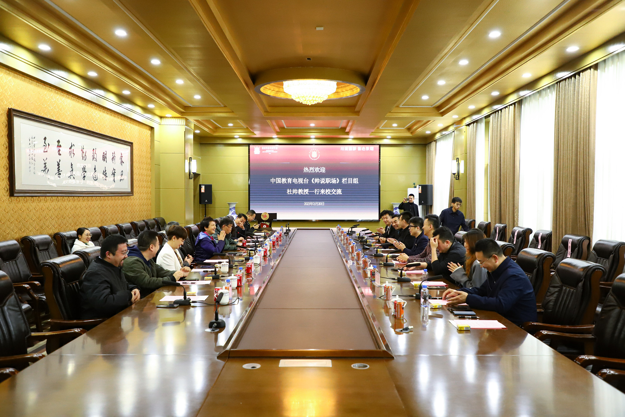 会前,中国教育电视台《帅说职场》栏目组杜帅教授一行到我校安仁校区参观交流。在学校领导的陪同下,杜帅教授一行参观了四川影视文创城、摄影棚、贡院大剧院、电影学院、教学实训场地等,对川影安仁校区进行实地考察,了解丰富多元的校园文化。