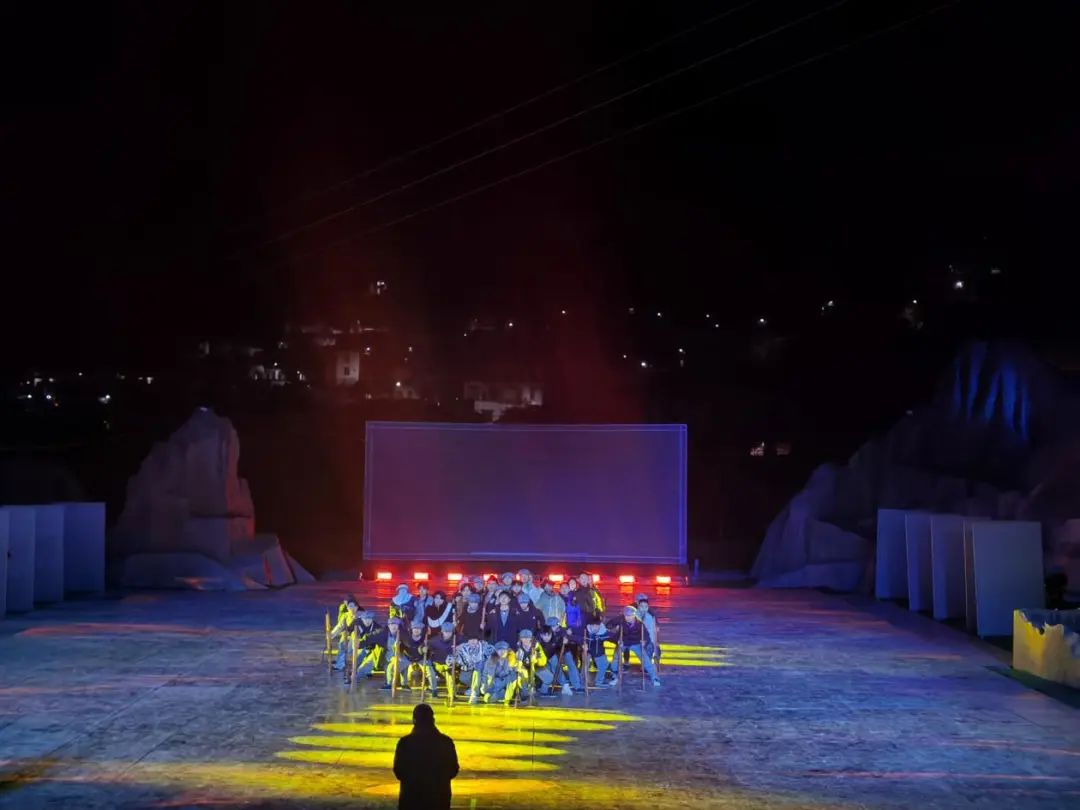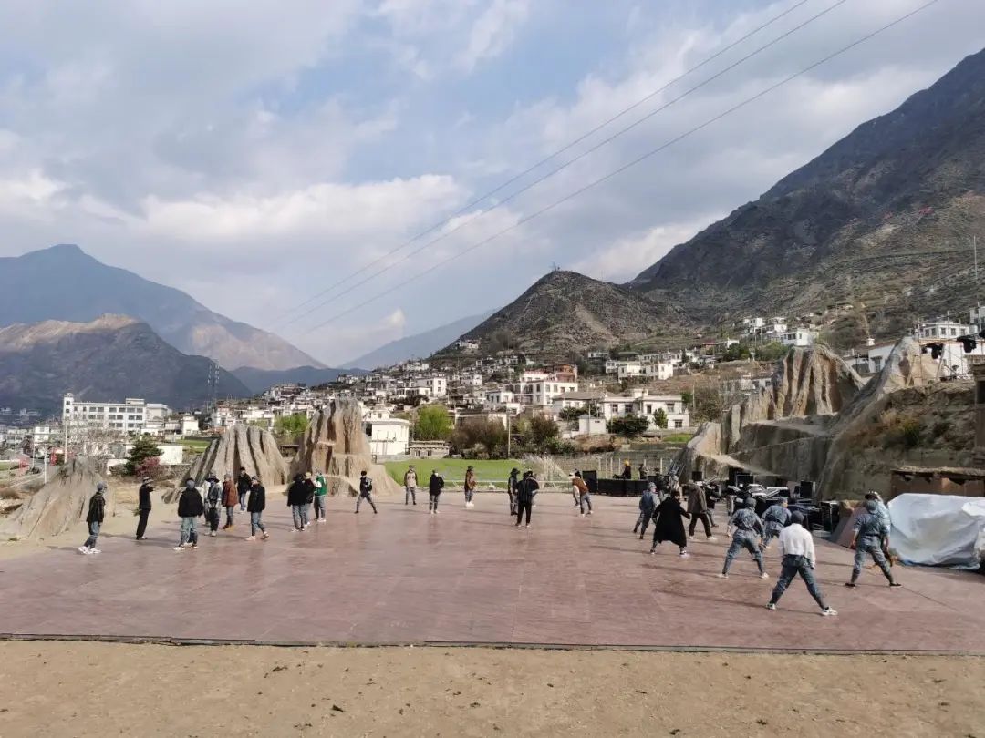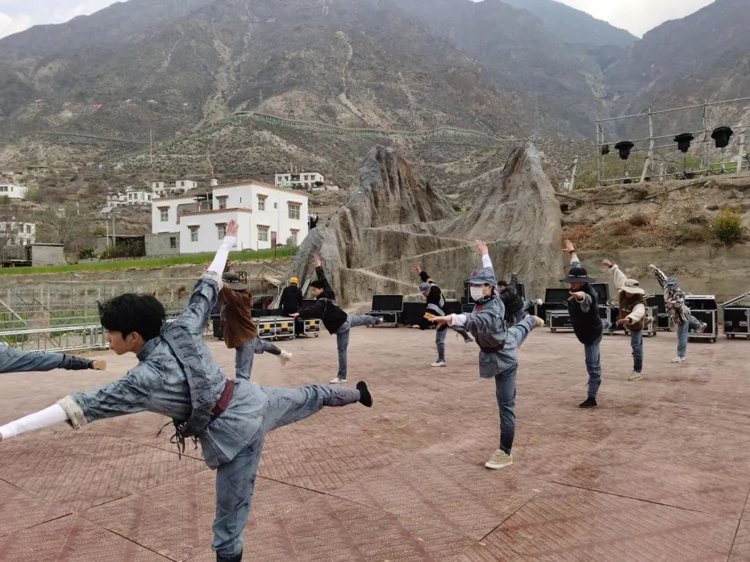 2023年3月12日,由音乐与舞蹈学院张宇娇老师带队前往甘孜州得荣县。到达得荣县后,演员们还需进行十多天的现场排练。甘孜地理条件特殊,早晚温差大,气候干燥,可谓是“早穿棉袄午穿纱”。但川影学子依旧顶着中午的烈日、夜晚的寒风,为了达到圆满的演出效果,坚持排练,无一缺席。