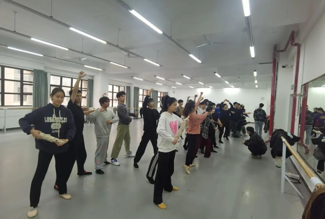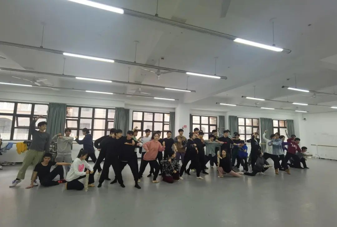 2023年3月1日,38名学生正式进入排练。时间紧、任务重。与以往演出不同的是,本次近85分钟的剧目,学生不仅担任了从头至尾的舞蹈表演,还要进行剧情表演。为了不耽误课程,此次排练均利用中午、晚上及周末的课余时间进行。川影学子克服重重困难,在10天的时间内,将整个剧目排练完成。