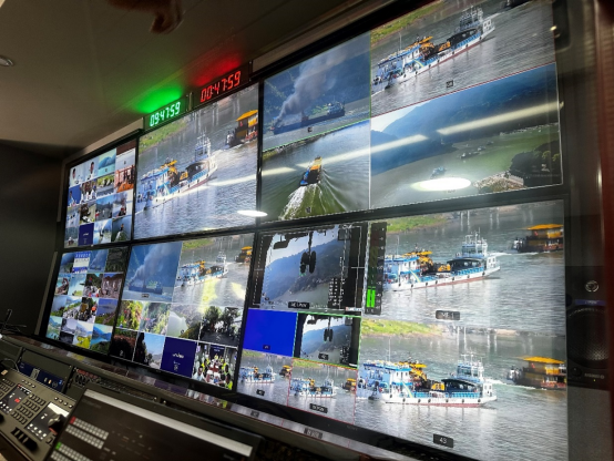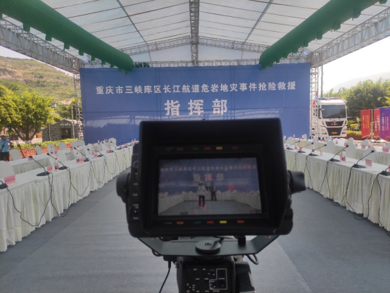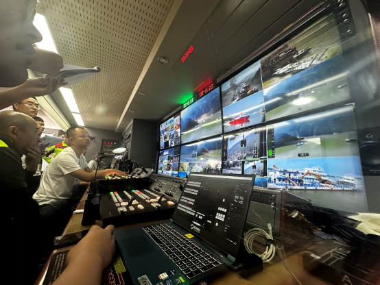 根据学校工作安排,委派学校教学实验中心副处长王钢副研究员一行携带学校高清全媒体直播车作为整个演习的媒体直播信号处理中心,全程参加本次演习制作,负责演习现场多达46路多格式视音频信号集中处理,制作并输出多路公共信号。学校高清全媒体直播车提供4路讯道保障现场指挥部转播信号传输,同时车内接入33路5G背包信号,负责多个演习区域信号实时传输,保证演习各环节各流程画面呈现以及5路无人机信号从空中立体展示演习实况、4路救援直升机卫星信号呈现每台直升机实时画面、重庆应急指挥部和下属各指挥部线上会议实时信号接入整个转播车视频系统,实现导播切换多级多路信号输入与输出。