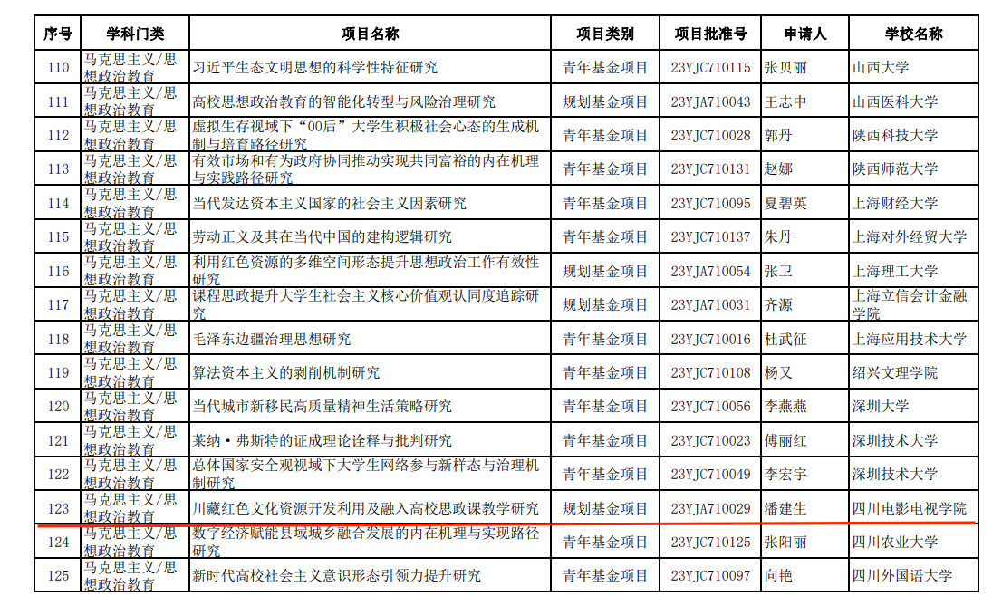 此次项目的立项是我校高度重视有组织科研工作、贯彻教育部颁布的《普通高等学校马克思主义学院建设标准(2023年版)》加强科学研究要求,继2022年董事长秘书李正丽副教授立项教育部人文社科青年基金项目后在教育部人文社科领域的又一次重大突破。请课题组成员按照《教育部人文社会科学研究一般项目管理办法》做好课题后续研究。立项详情请看网站:http://www.moe.gov.cn/s78/A13/tongzhi/202310/t20231019_1086367.html