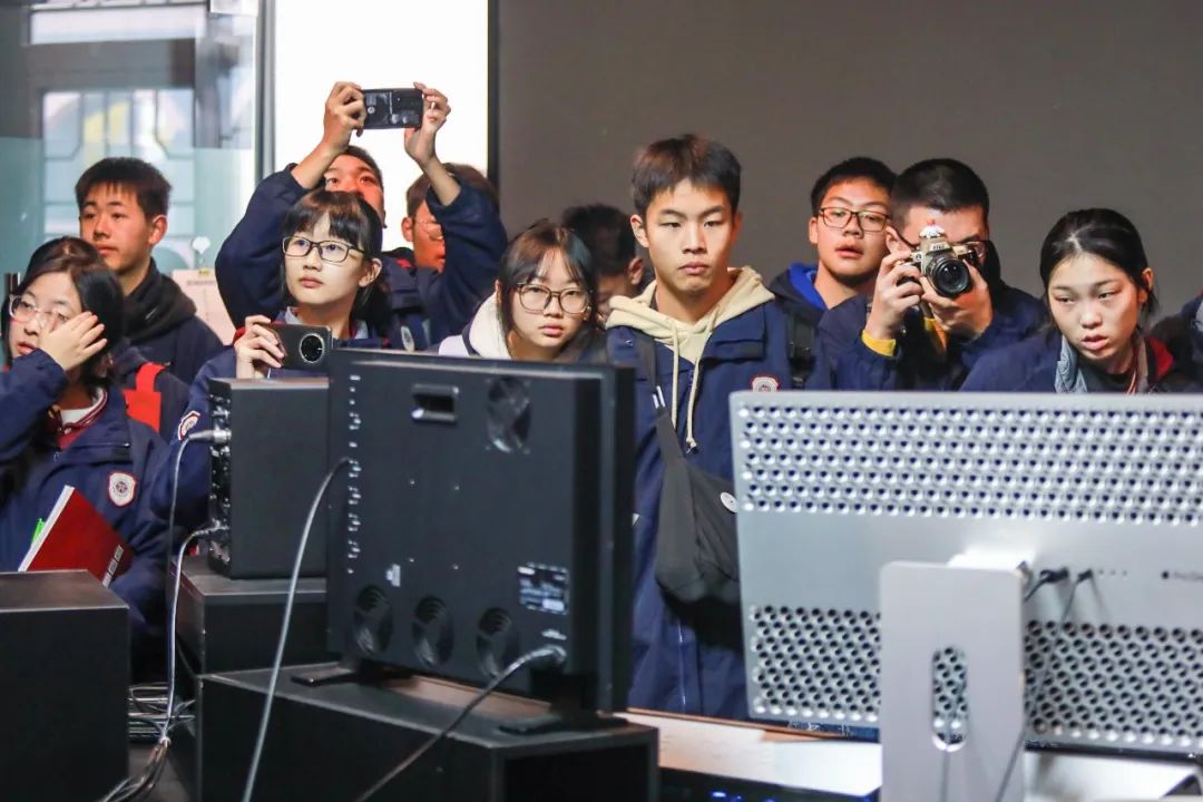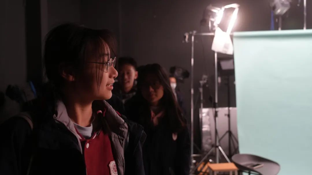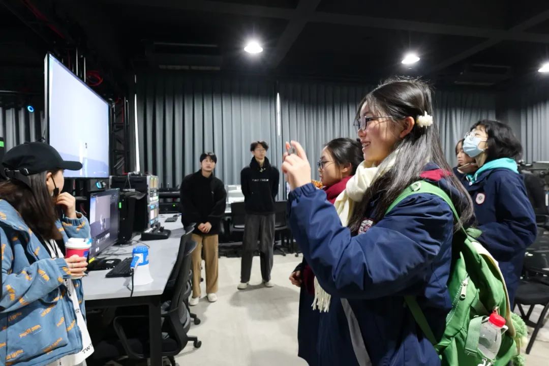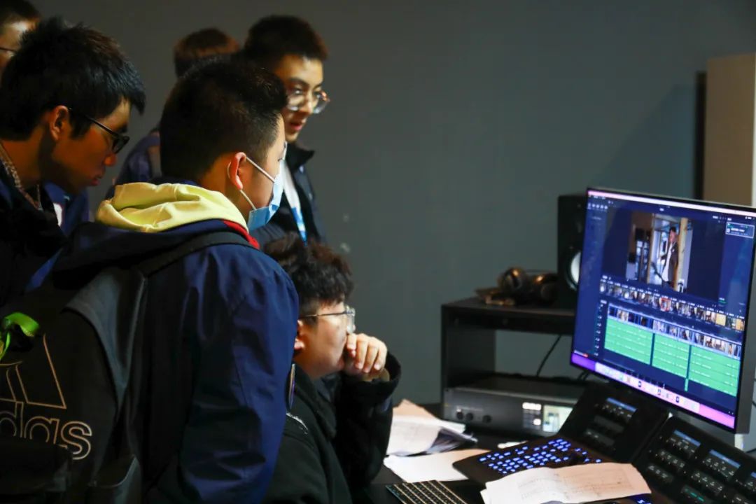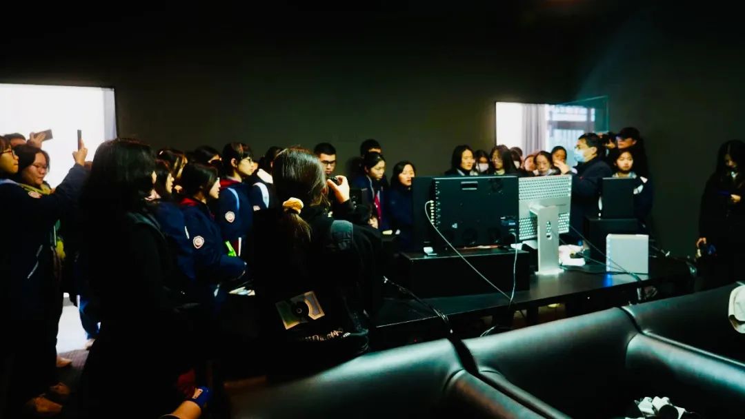 在影像调色工作室,学生们观摩电影后期影像制作,了解影像后期创作方法,笑眼盈盈的老师向同学们介绍调色设备和流程,激发同学们对画面色彩的兴趣。在声音编辑工作室,录音棚的高质量隔音和吸音材料,体现了电影声音后期创作的专业性,同学们了解到声音质量,在剧情描绘中带来的观感至关重要。