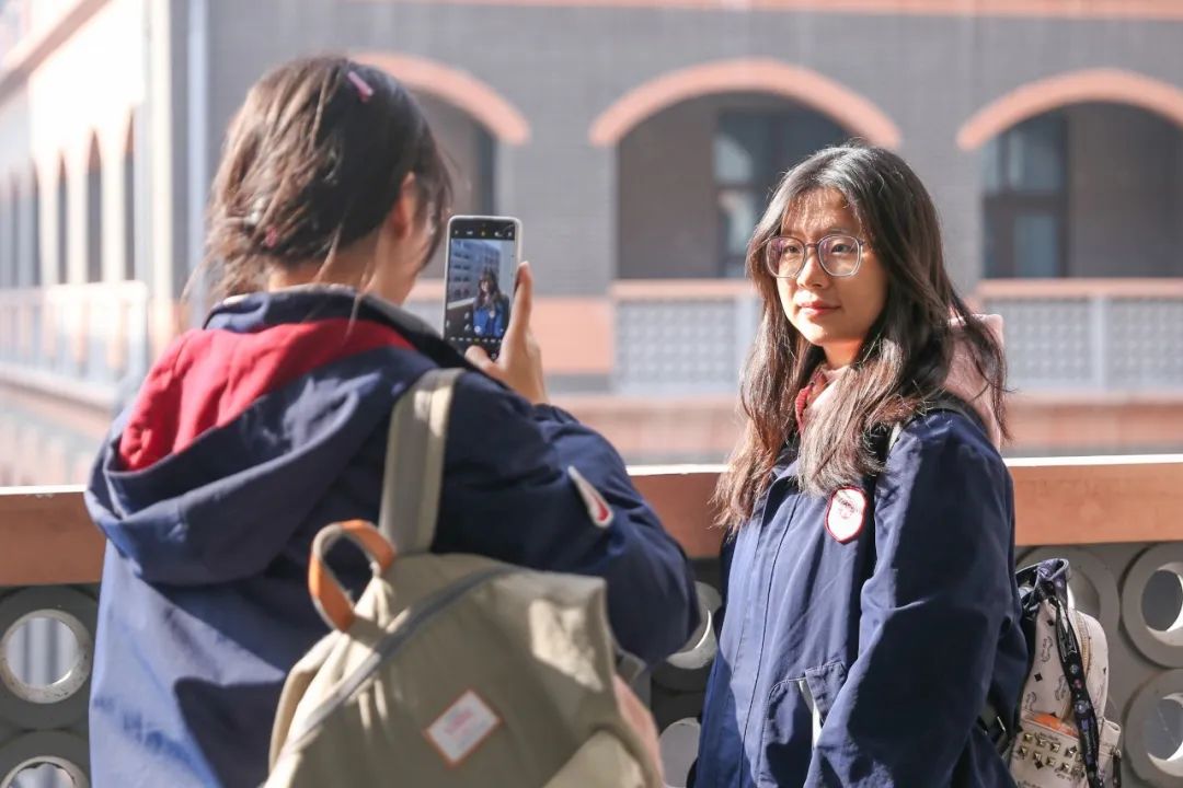 美丽的川影校园吸引了很多来研学的同学们驻足停留,拍照合影。