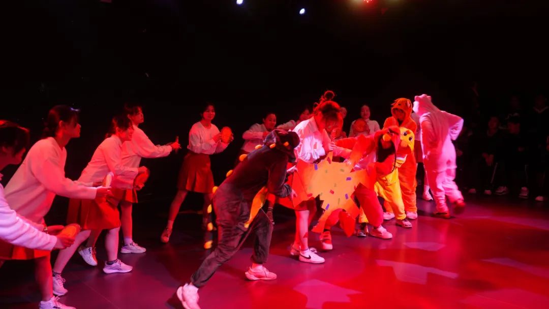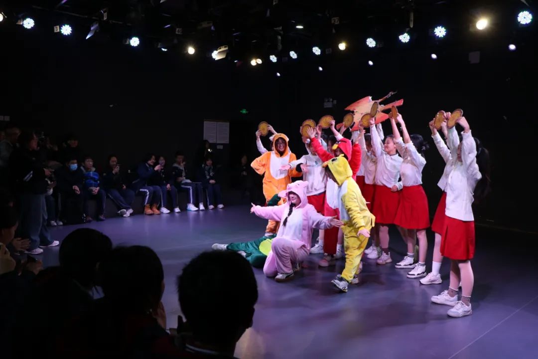 电影学院的最后一站是黑匣子剧场。在这里,艺术教育专业的同学们早已在这里等候,等大家落座后,用舒展的肢体语言诠释了故事世界的美妙,用情传递快乐能量,给大家带来一场童趣满满的儿童话剧表演。