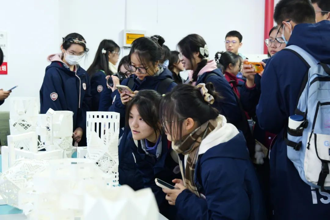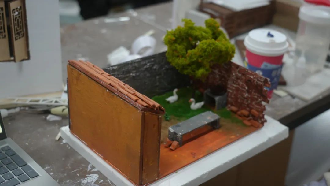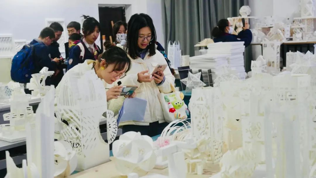 出了摄影棚,来到微缩场景工作室,在这里观摩电影美术中微缩场景创作过程,了解微缩场景在电影拍摄中的应用。川影戏美的同学们创造的微缩场景姿态万千,引得学生们上前仔细观察、小声讨论。