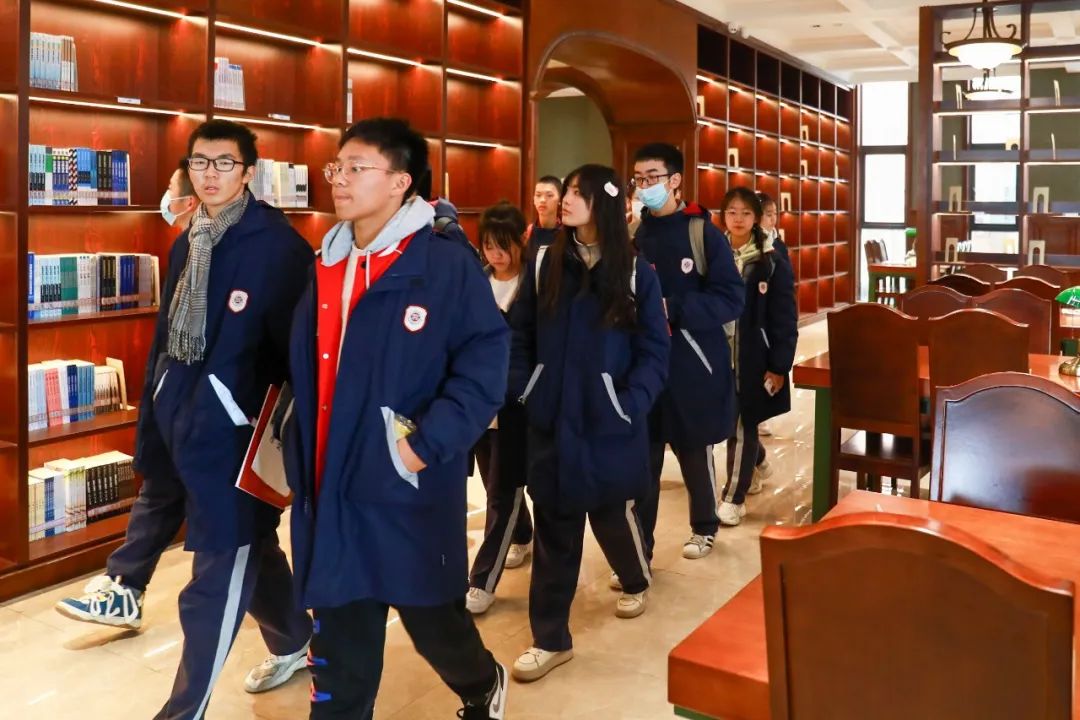 同学们的最终目的地是双创园图书馆,进入图书馆后,同学们自觉噤声,穿梭于层层叠叠的书架中,徜徉在书海的怀抱里。一位同学在观摩过程中小声地向带队老师发问,心中的疑问随着探索的脚步一起被解答。