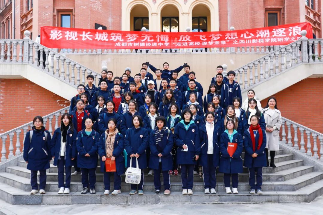 清风和煦轻柔,阳光温馨恬静,蓝天白云飘逸悠扬,12月6日,来自成都树德协进中学高一、高二120名学生、各班带队老师和部分家长代表,来到省级研学旅行实践基地——beat365平台官方网站·四川影视文创城,开启一场奇妙的影视研学之旅。