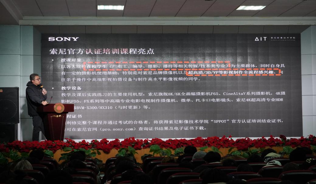 索尼作为掌握超高清影像技术的头部企业,致力以先进的技术和优秀的产品服务全球用户,索尼影像技术学院也非常荣幸能够将索尼“SPPOT”官方认证课程带到川影校园中来。本次培训课程将让同学们充分学习体验“先进数字影像技术”,例如4K/8K等超高清影像技术以及3D/VR/AR/VP等立体虚拟现实技术,提升自身对先进影像全流程制作能力的知识储备。