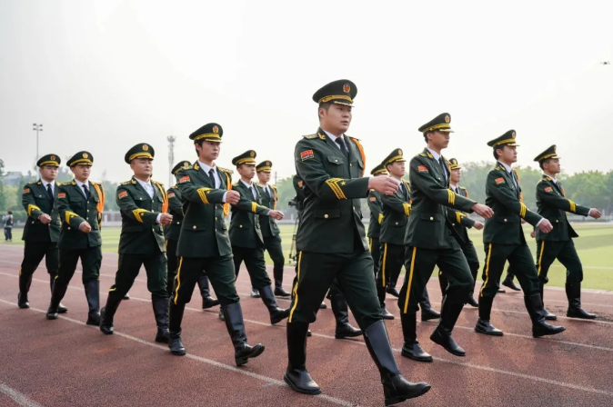 “听党指挥,能打胜仗,作风优良”,退役军人学员们穿着整洁的国旗队制服,气势十足地喊着口号。他们挺直胸膛,目光坚定,迈着昂扬的步伐走向主席台,成为运动场上一道独特的风景线。