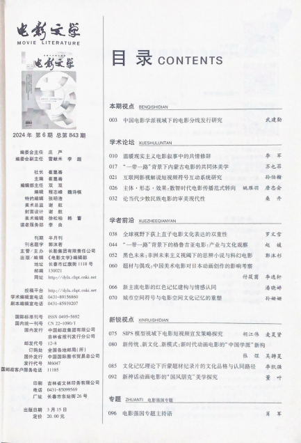 《电影文学》在2013年8月收入国家哲学社会科学学术期刊数据库,2008年入选中文科技期刊数据库收入期刊,2004年入选中国学术期刊综合评价数据库来源期刊,2000年入选中国期刊全文数据库收录期刊,1992入选北大《中文核心期刊要目总览》。出版周期:半月,ISSN:0495-5692,CN:22-1090/I。目前出版文献量:23952篇,总下载次数:5472052次,总被引次数:40470次,(2019版)复合影响因子:0.128,(2019版)综合影响因子:0.023,北京大学《中文核心期刊要目总览》来源期刊,1992年(第一版),1996年(第二版),2000年版,2004年版,2008年版,2011年版,2014年版,2017年版,2020年版。《中国人文社会科学期刊AMI综合评价报告》2018版A刊核心,2022版A刊扩展。