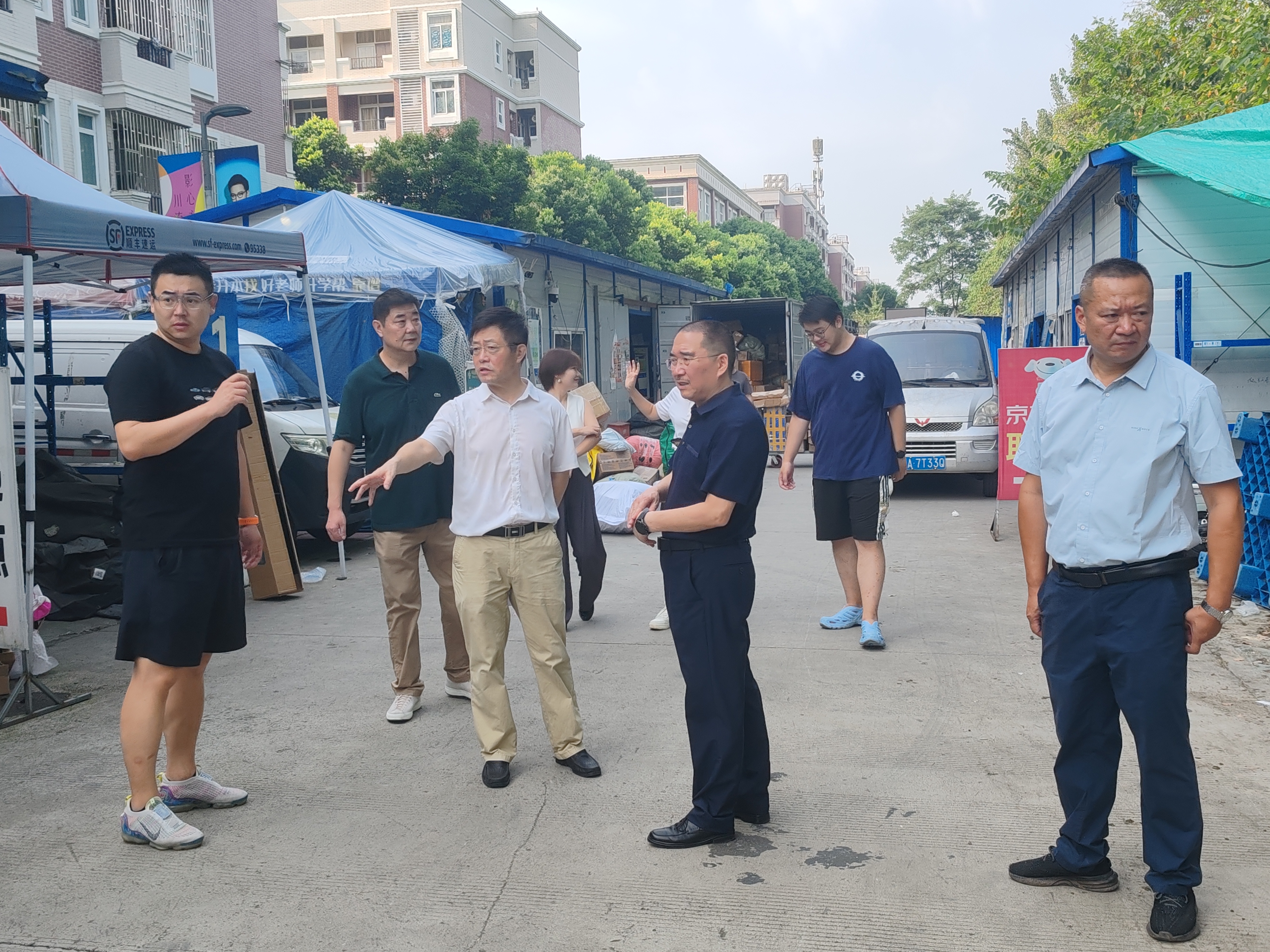 (柳运西处长带队检查快递站、食堂)