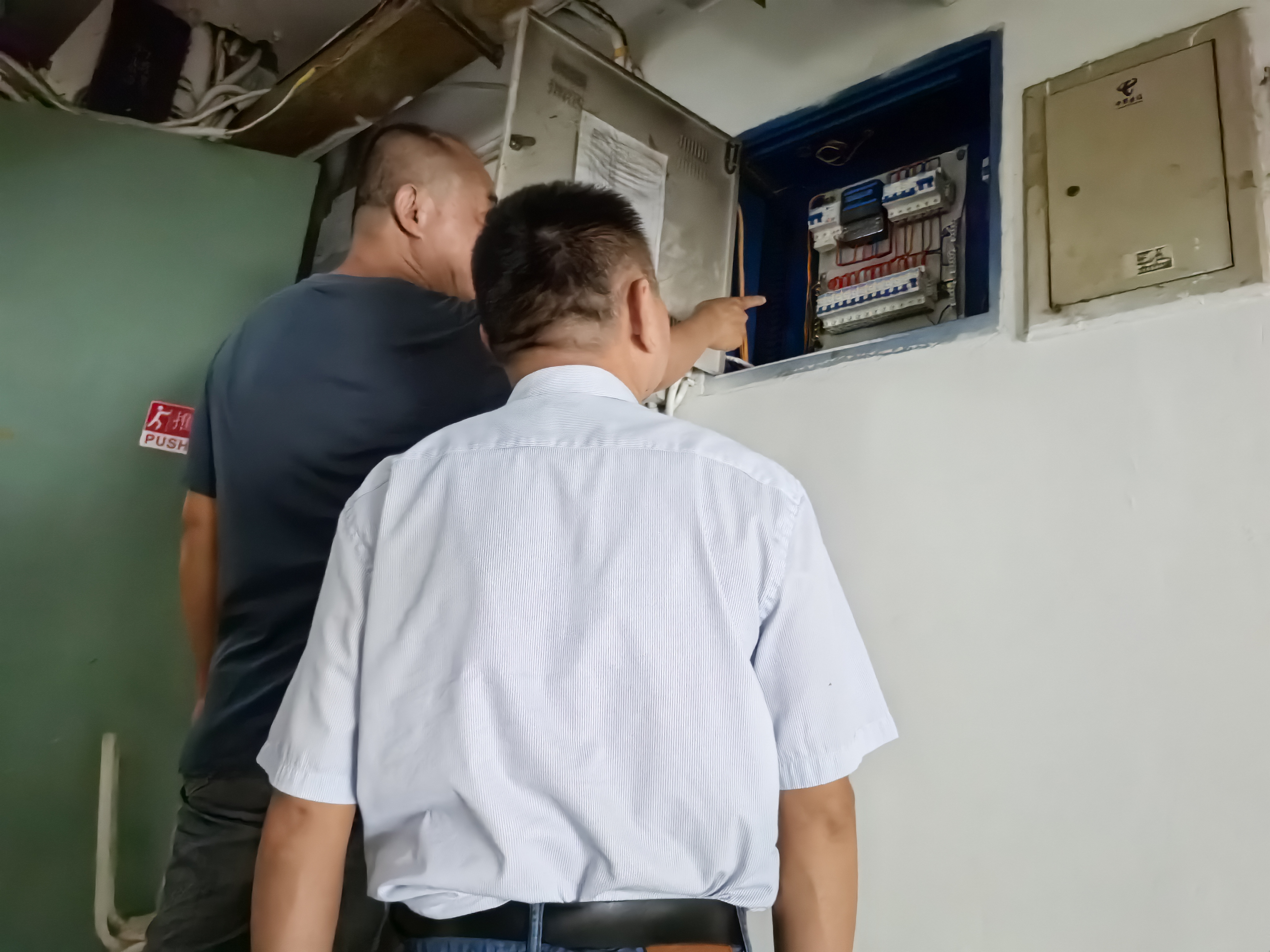 (黄萍处长带队检查教室、变电房)
