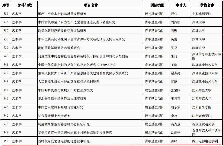 近日,从教育部社科司获悉,我校电视学院院长助理蒋峰副教授、电影学院韩涛副教授、舞蹈学院张乐乐老师分别主持申报的《新时代家庭伦理电影的道德叙事研究》《斯坦尼斯拉夫斯基体系表导演理论与实践中国化研究》《藏彝走廊“南彝”区域传统舞蹈的文化共享研究》获2024年度教育部人文社会科学研究青年基金项目立项。
