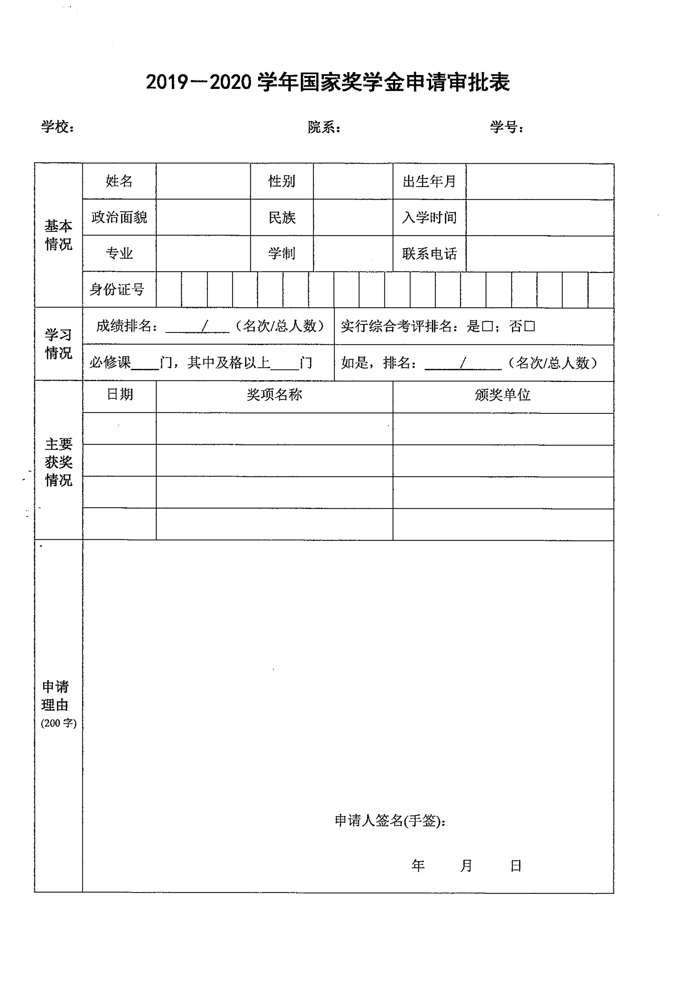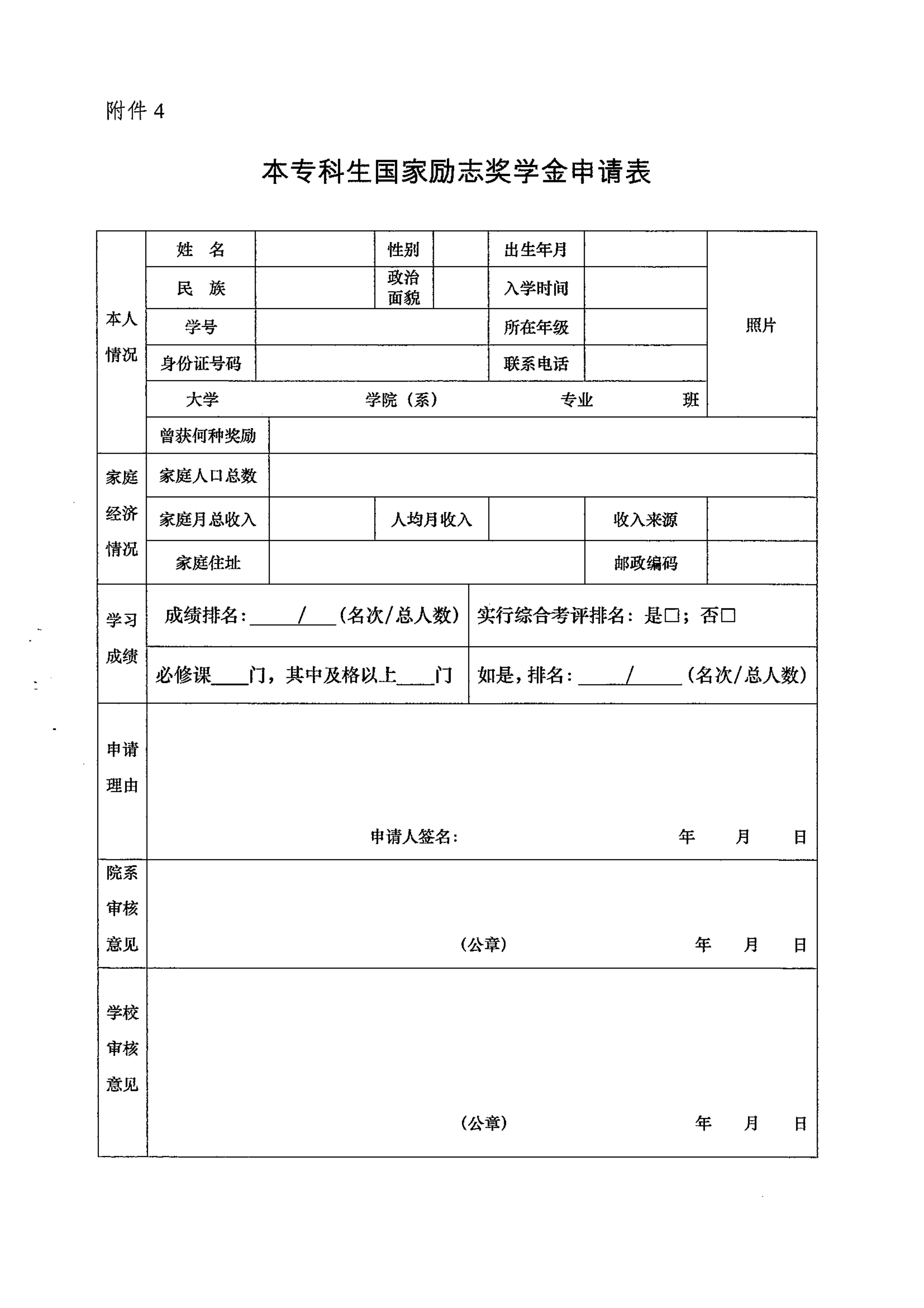 附件4:本专科生国家励志奖学金申请表(2019版)