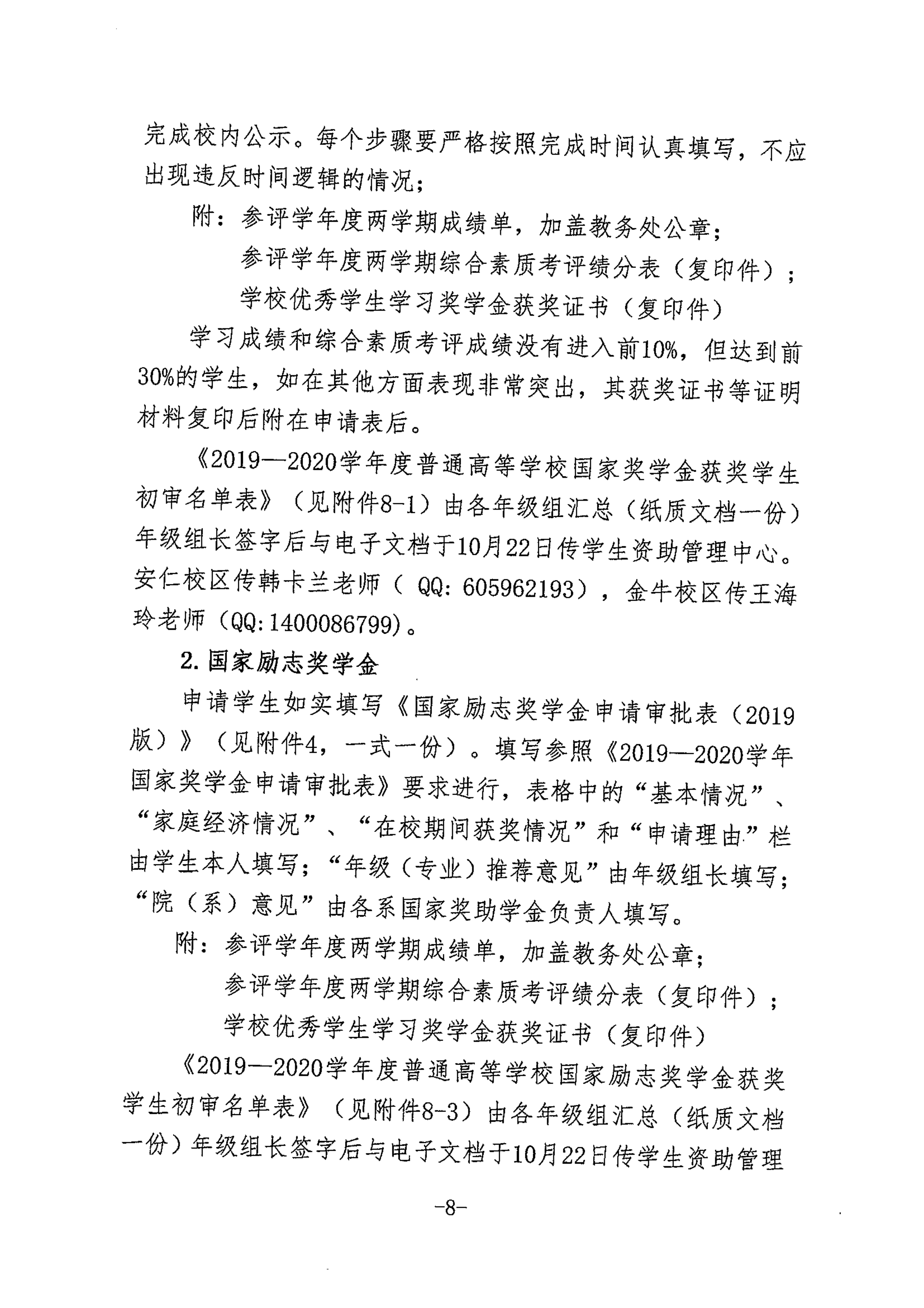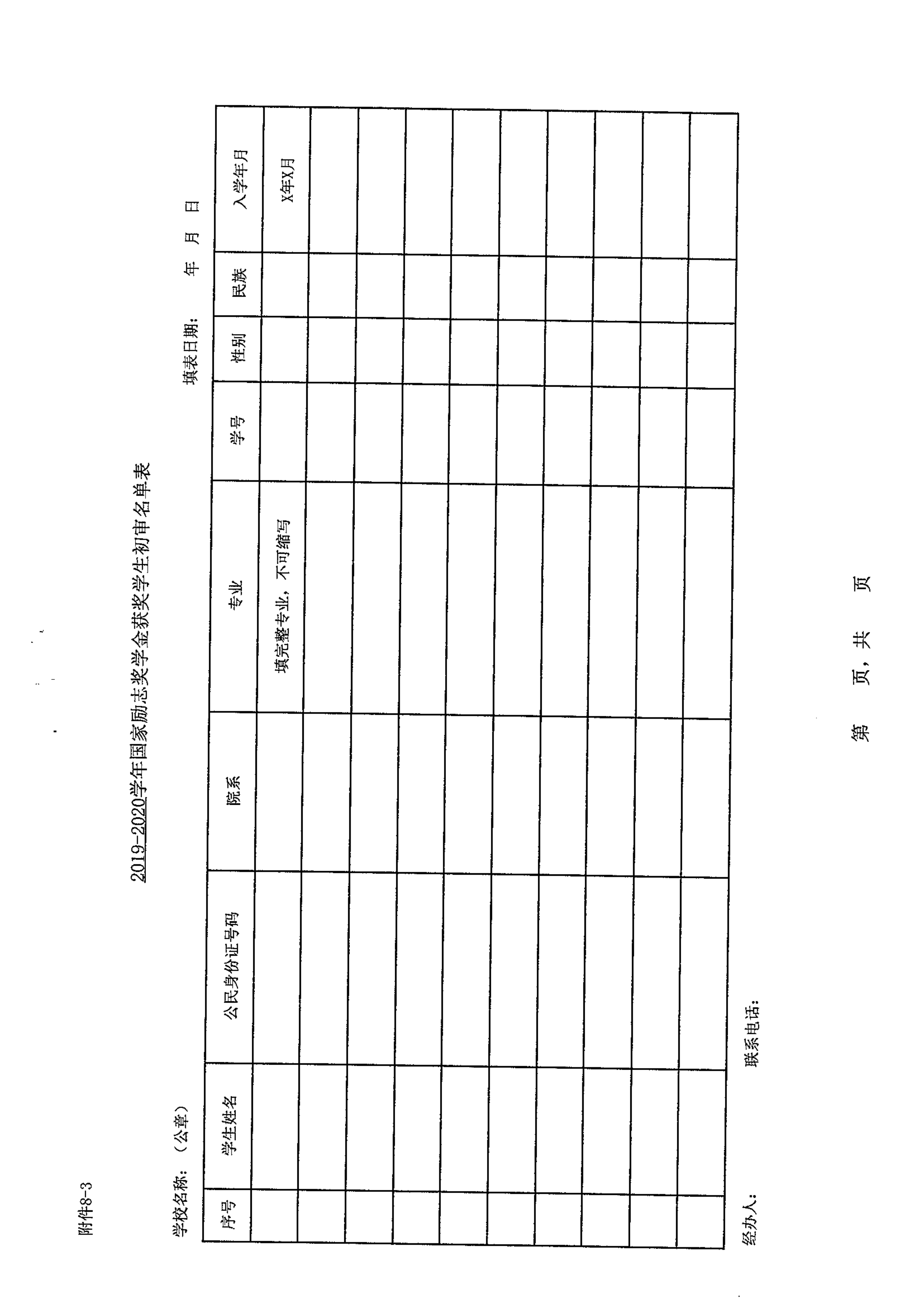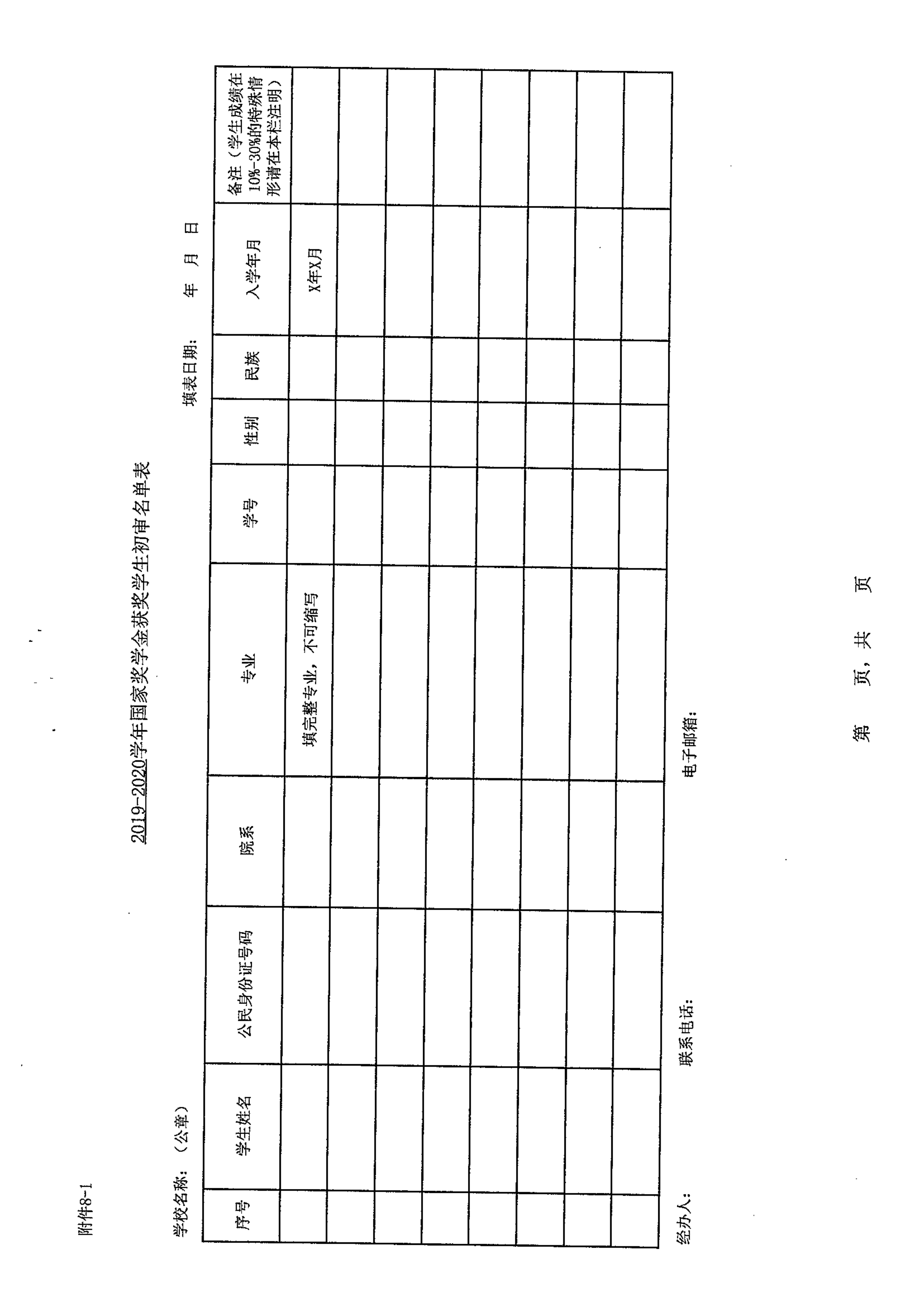 附件8:《2020年国家奖助学金上报材料一览表》等8表