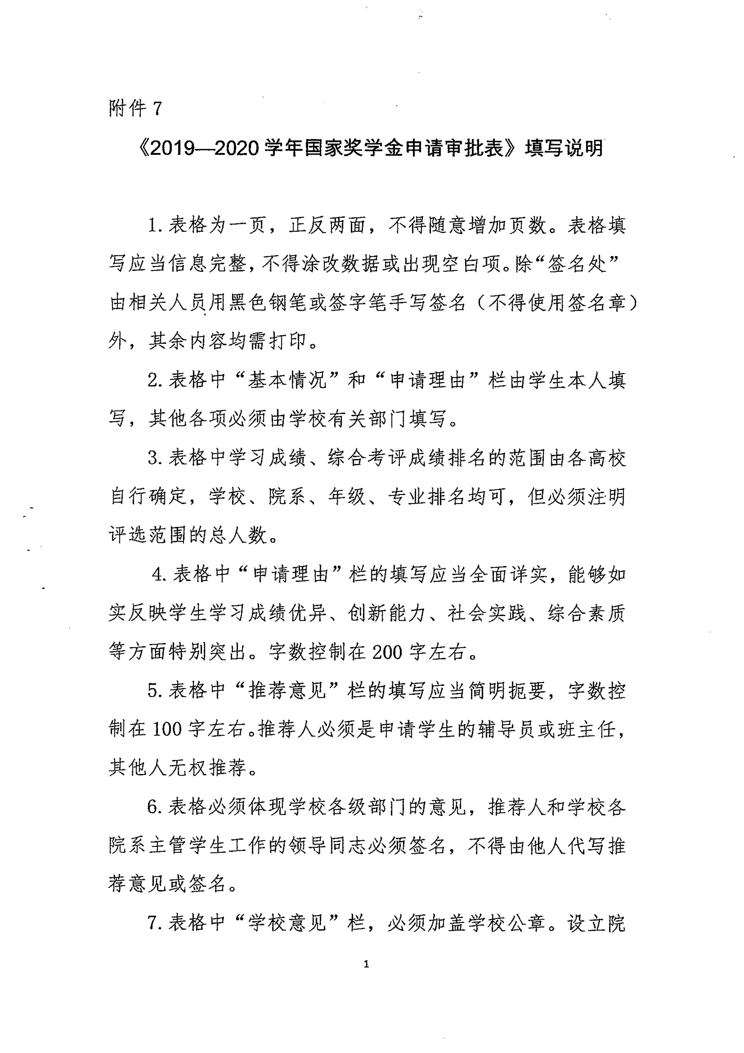 附件7:《2019-2020 学年国家奖学金申请审批表》填写说明
