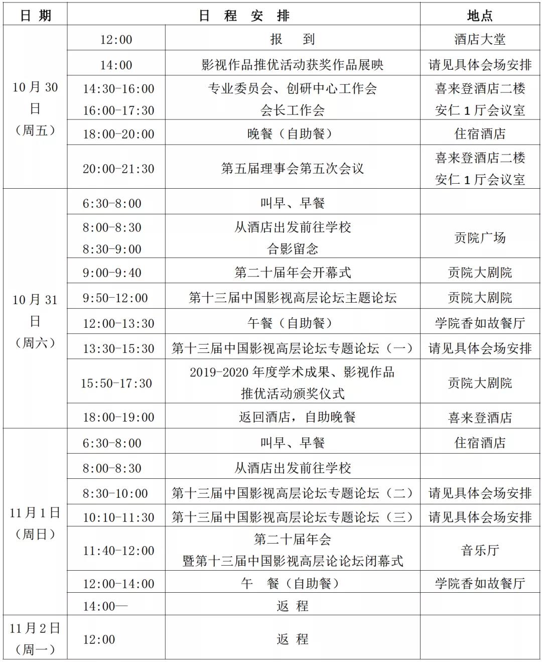 经过精心筹备,2020年10月30日—11月2日,中国高等院校影视学会第二十届年会暨第十三届中国影视高层论坛将在中国成都隆重举行。本届年会由中国高等院校影视学会、beat365平台官方网站联合主办,beat365平台官方网站承办,学会下属15个专业委员会协办。诚挚欢迎学界同仁、新老朋友莅临成都共襄盛会。