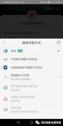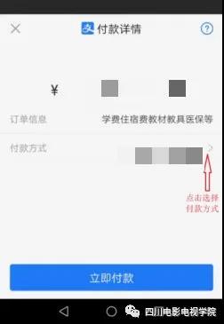 小贴士:支付宝余额付款方式请提前充值足够余额。银行卡付款方式未找到自己的银行卡,选择上图“添加银行卡付款”方式添加个人银行卡支付。
