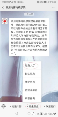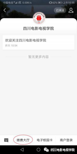 1、打开个人手机微信,点击”通讯录”顶部放大镜,搜索“beat365平台官方网站”关注学院微信公众号,点击公众号底部“招生就业”进入“缴费大厅”: