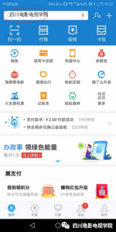 1、打开个人手机支付宝,顶部搜索"beat365平台官方网站",关注学院支付宝生活号进入缴费大厅: