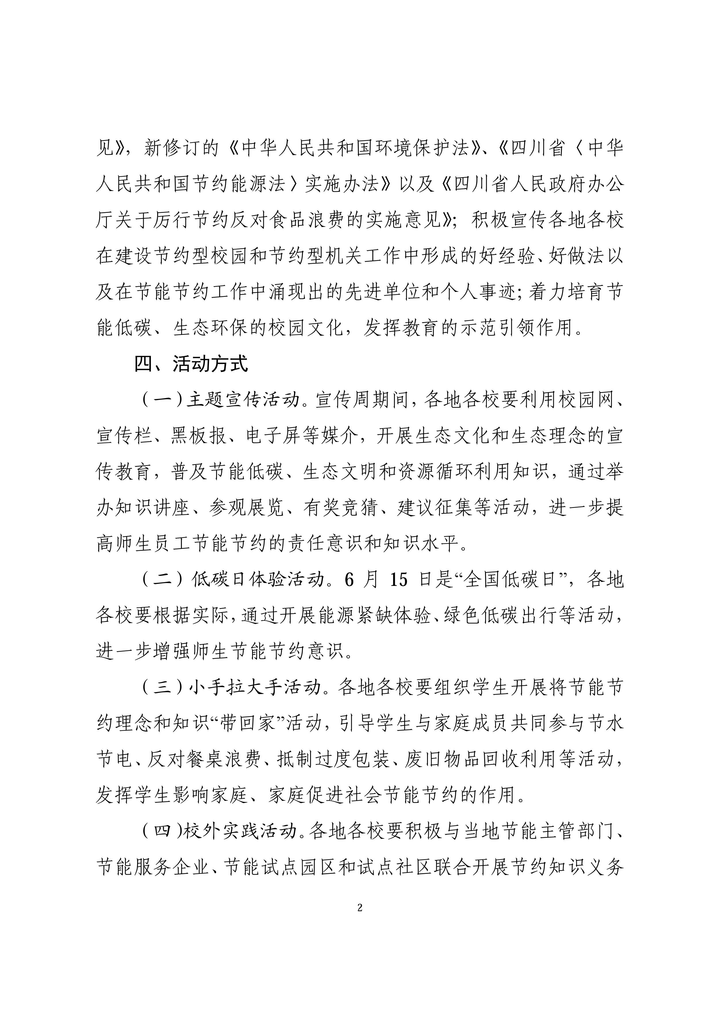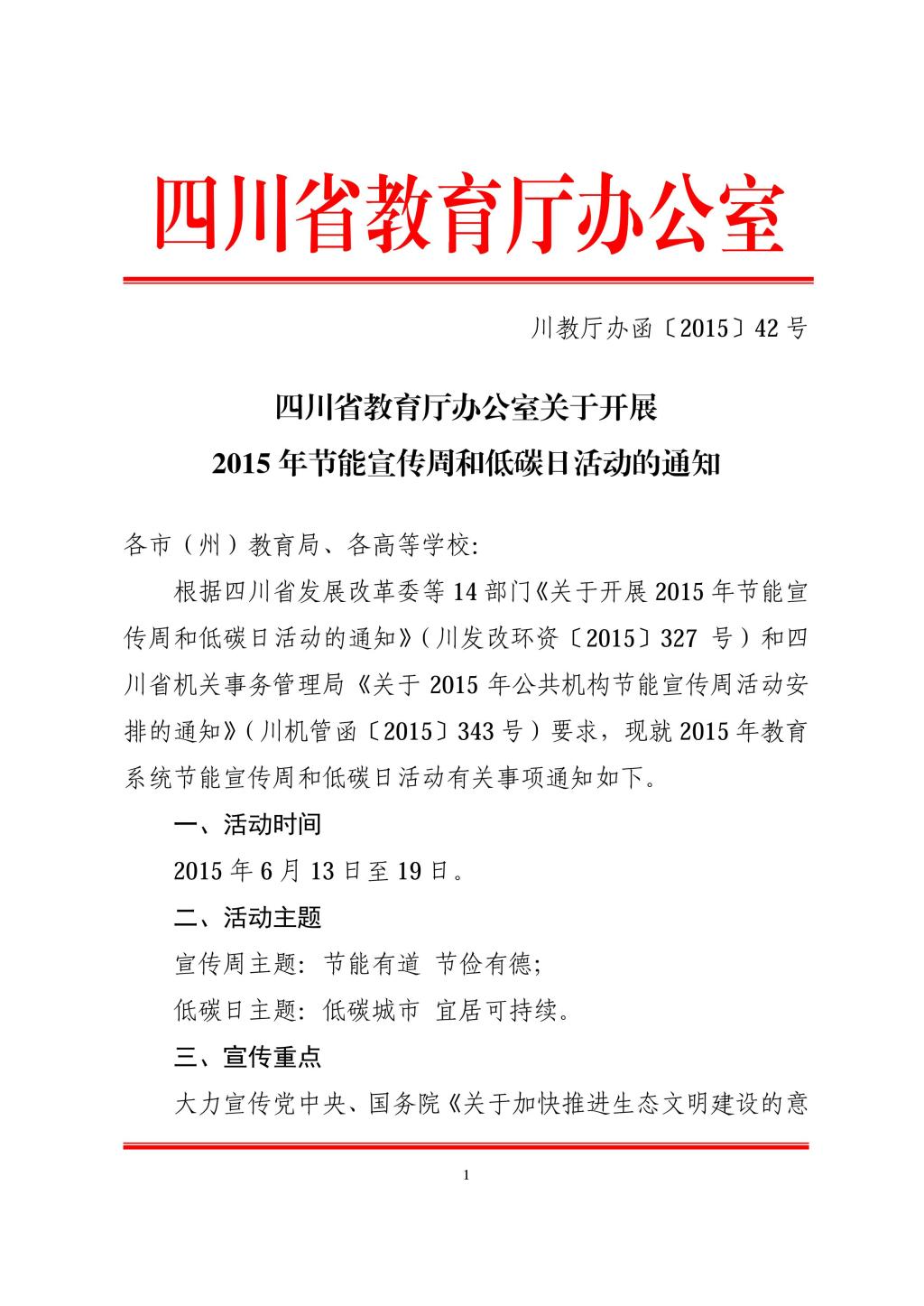 四川省教育厅办公室关于开展 2015 年节能宣传周和低碳日活动的通知