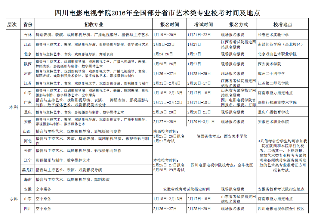 五、beat365平台官方网站2016年艺术专业报名考试时间及地点