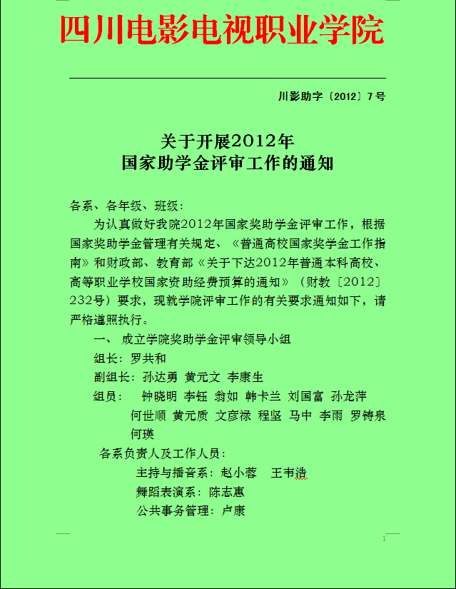 2012.10.12(2012)7号 职业学院关于2012年国家奖助学金评审的通知