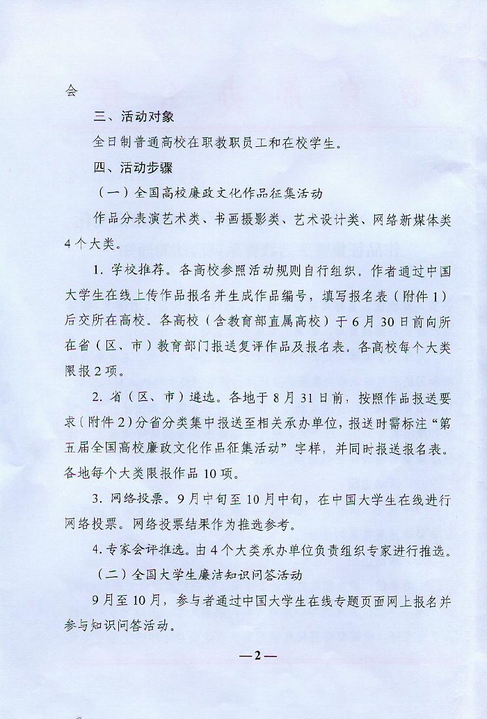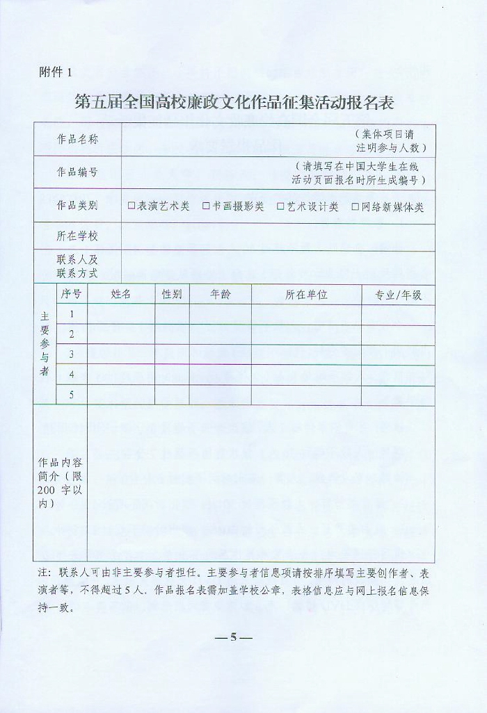 教育部办公厅关于举办第五届全国高校廉政文化作品征集暨廉洁教育系列活动的通知