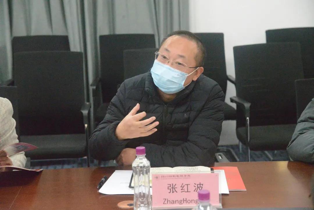 在交流过程中,播音主持学院院长赵小蓉对我院的基本情况、应用型本科建设以及合作企业参考项目进行了详细介绍。随后,锦江区融媒体中心副主任张红波介绍了锦江区融媒体中心的工作环镜、分管部门以及工作内容。他谈到,锦江区融媒体中心现在的主要工作内容是向三微一端发力,视频、客户端以五城区的民生为主,传统媒体以新闻为主。