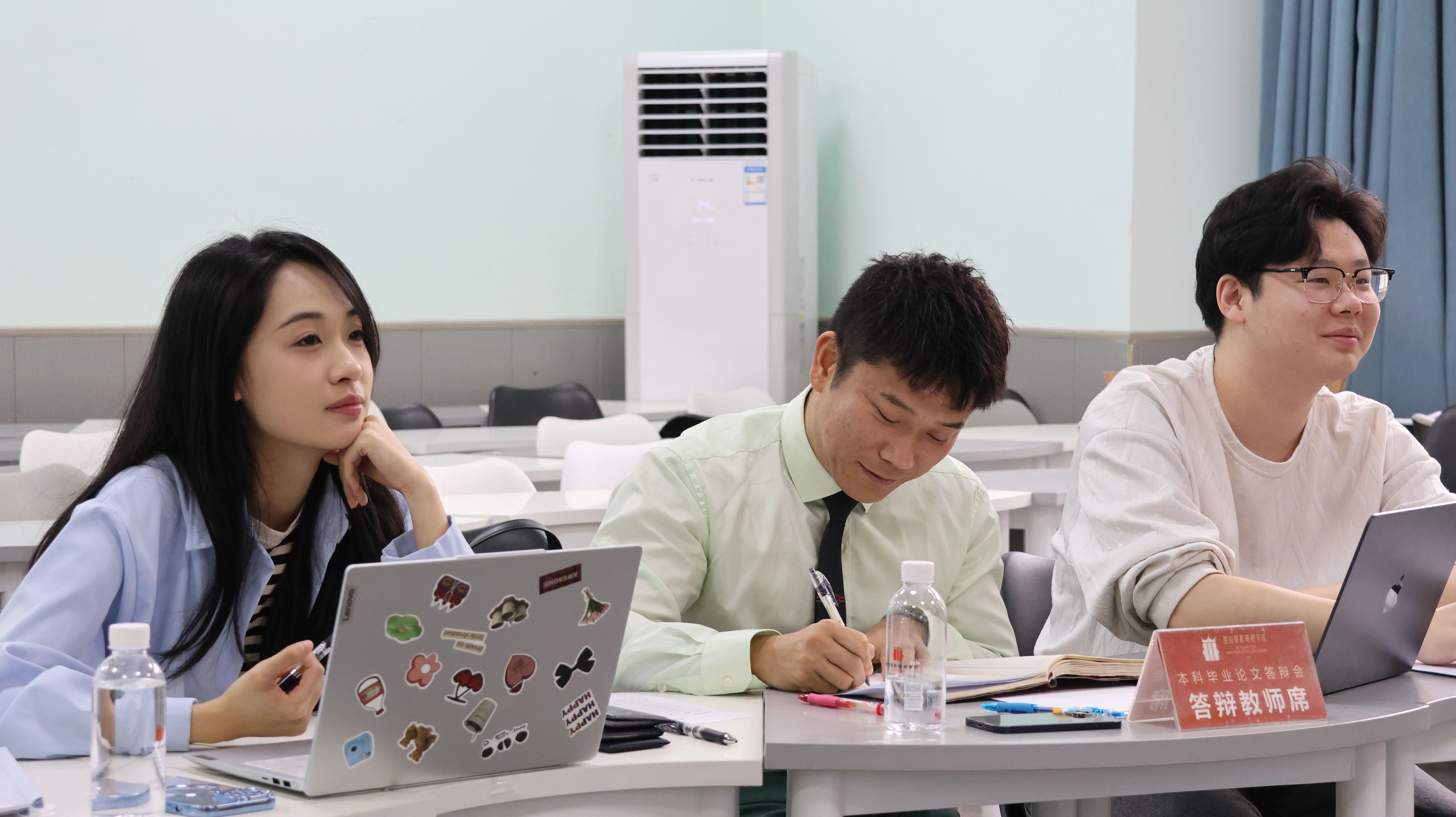 上午的答辩环节中,川影创校校长罗共和教授,副校长刘志勤教授,学校校级督导解伟教授、骆晓平教授,播音主持学院院长赵小蓉教授,副院长周欣教授,他们亲临答辩现场,对答辩工作进行了巡视,并在教室中观摩了答辩过程。他们的参与不仅为我们的答辩工作提供了专业的指导,也进一步确保了答辩现场的秩序和规范性。