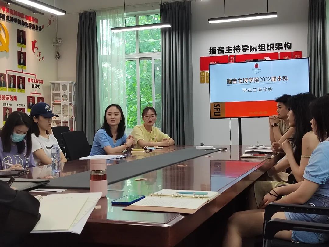 5月11日上午,播音主持学院2022届毕业生座谈会在贡院413播主学院会议室举行。