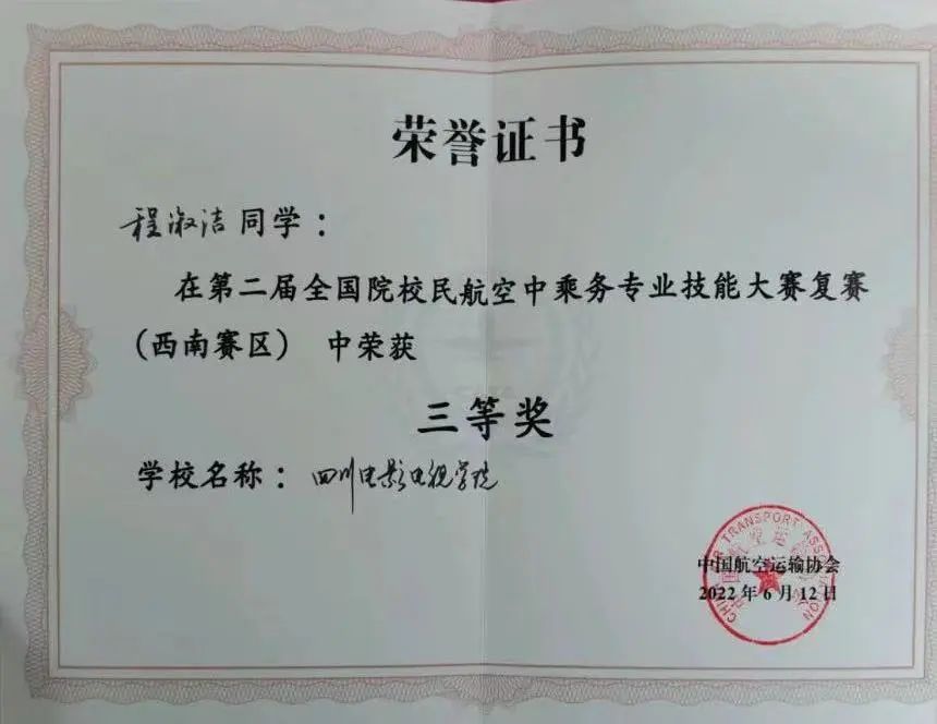 2021级空中乘务1班 程淑洁