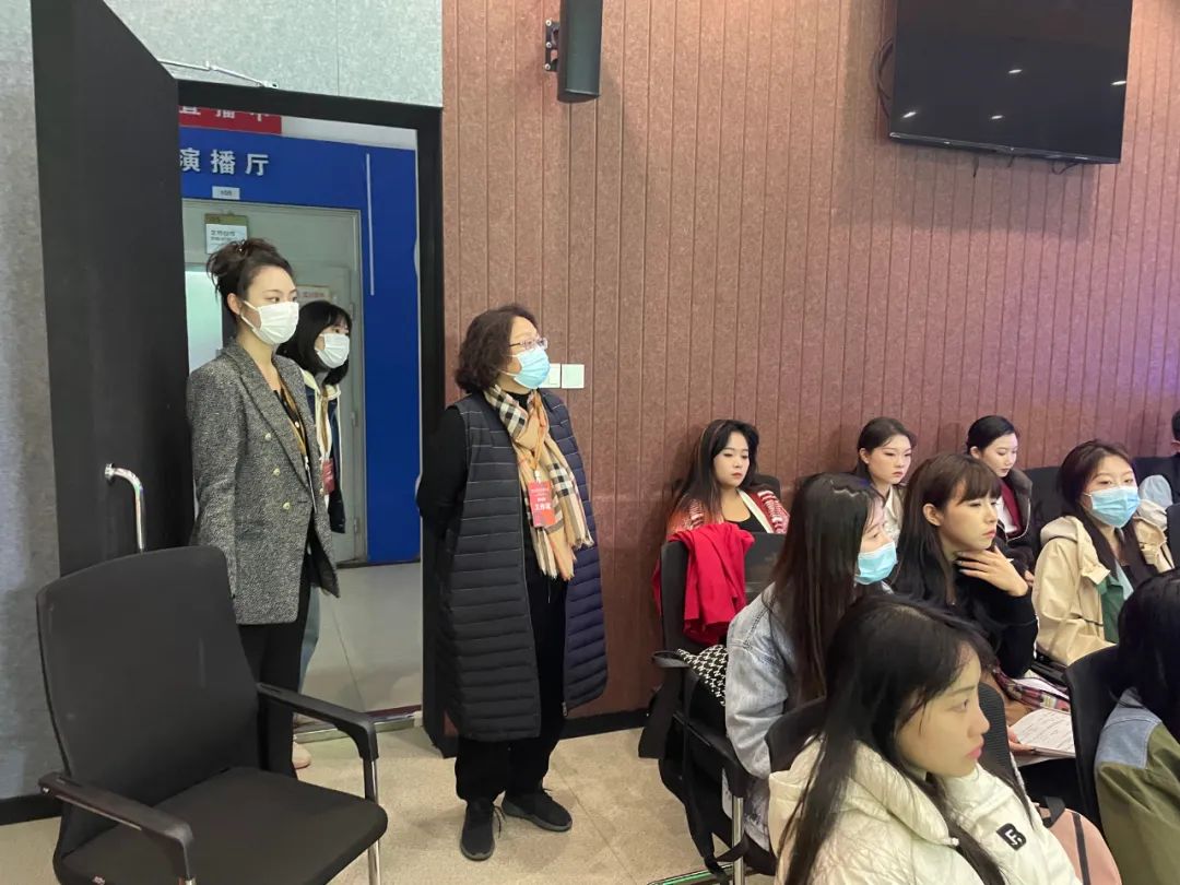 ▲播音主持学院党委副书记、纪委书记曾丽萍副教授带队进行教学检查