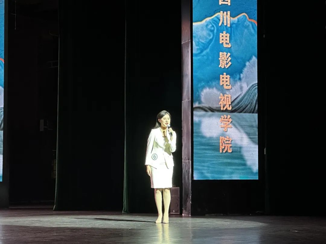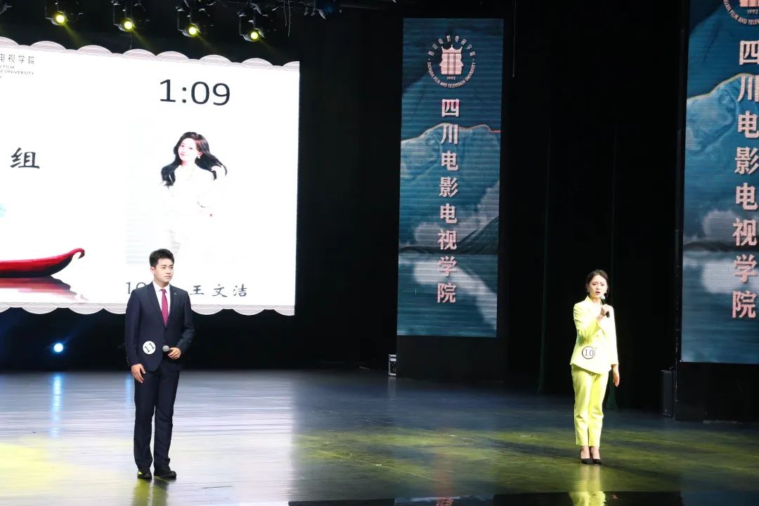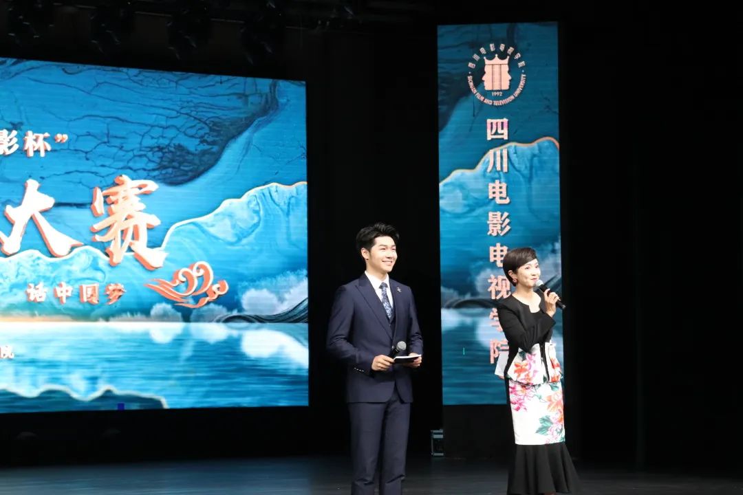 2001级学院优秀毕业生、成都电视台主持人卿媛与2020级播音与主持艺术专业在校生朱彦豪共同担任本次大赛主持人。